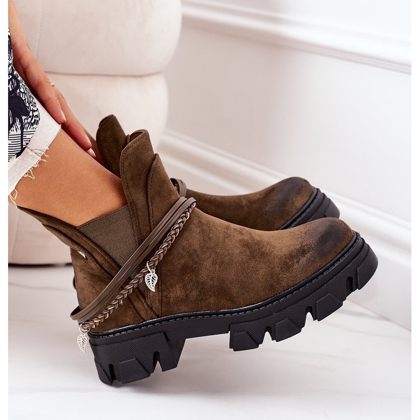 Découvrez l'élégance et le confort pendant les mois les plus chauds avec les bottes Chelsea isolées PS1 en vert foncé de la collection KeeShoes. Ces bottines pour femmes uniques sont soigneusement confectionnées en daim écologique, ce qui leur confère un look subtil mais efficace. L'intérieur des bottes est doublé d'une couverture douce pour chaussures, assurant chaleur et confort même par temps froid.