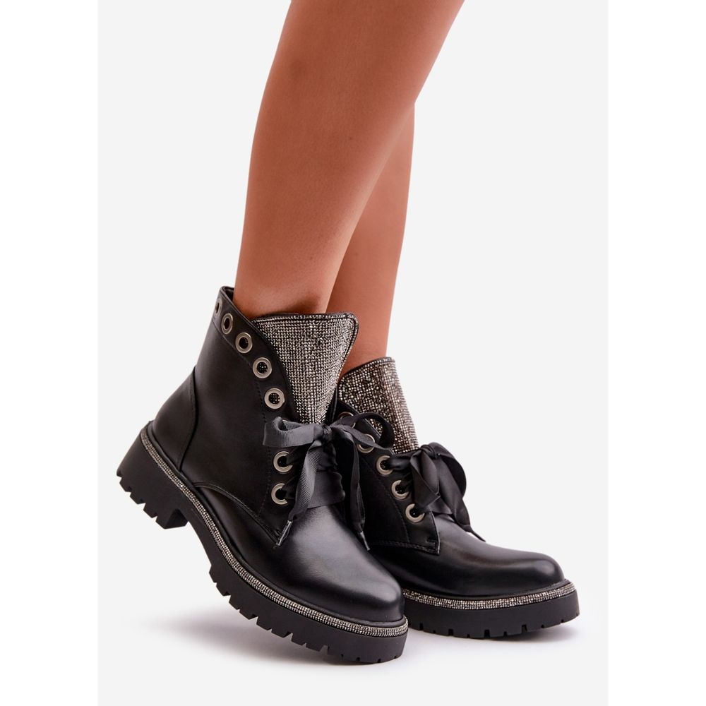 Détails: Bottines chaudes en cuir écologique pour femmes décorées noir Rilatha
