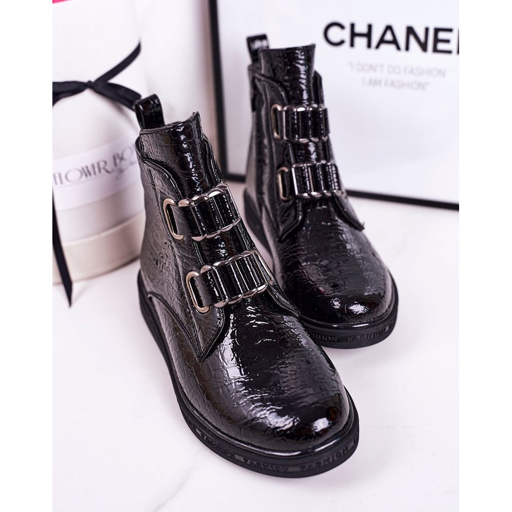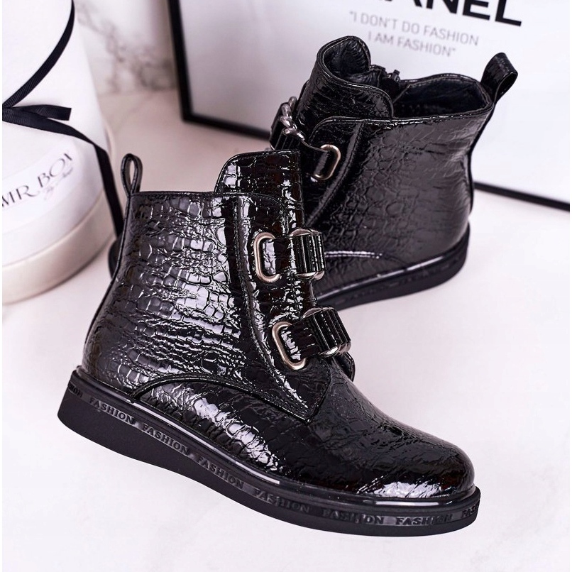 Détails: PL1 Bottines Chaudes Enfant Laquées Noir Motif Animal Maya le noir