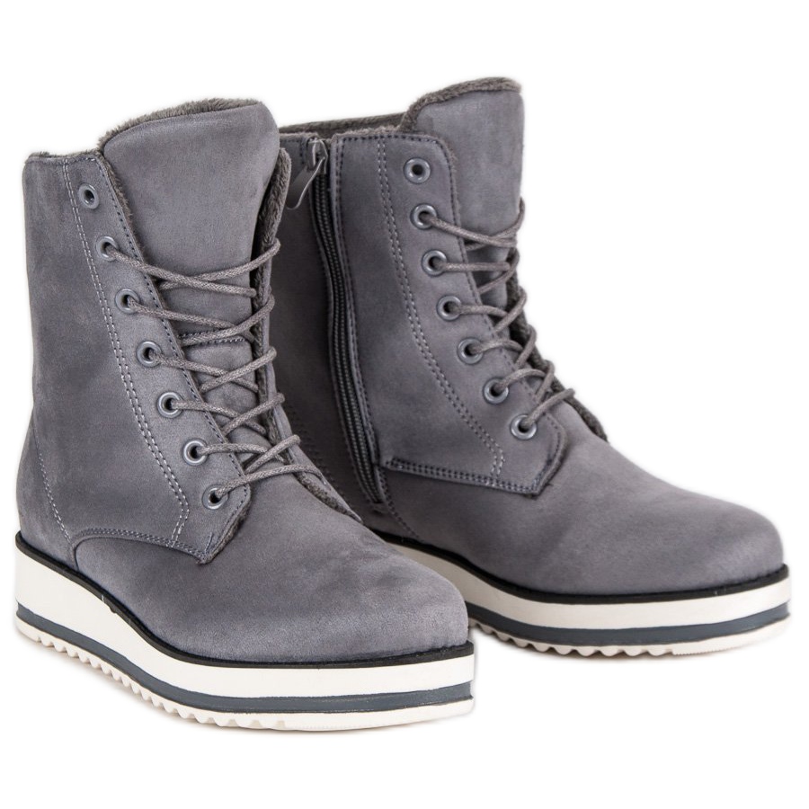 Détails: Bottines chaudes et nouées gris