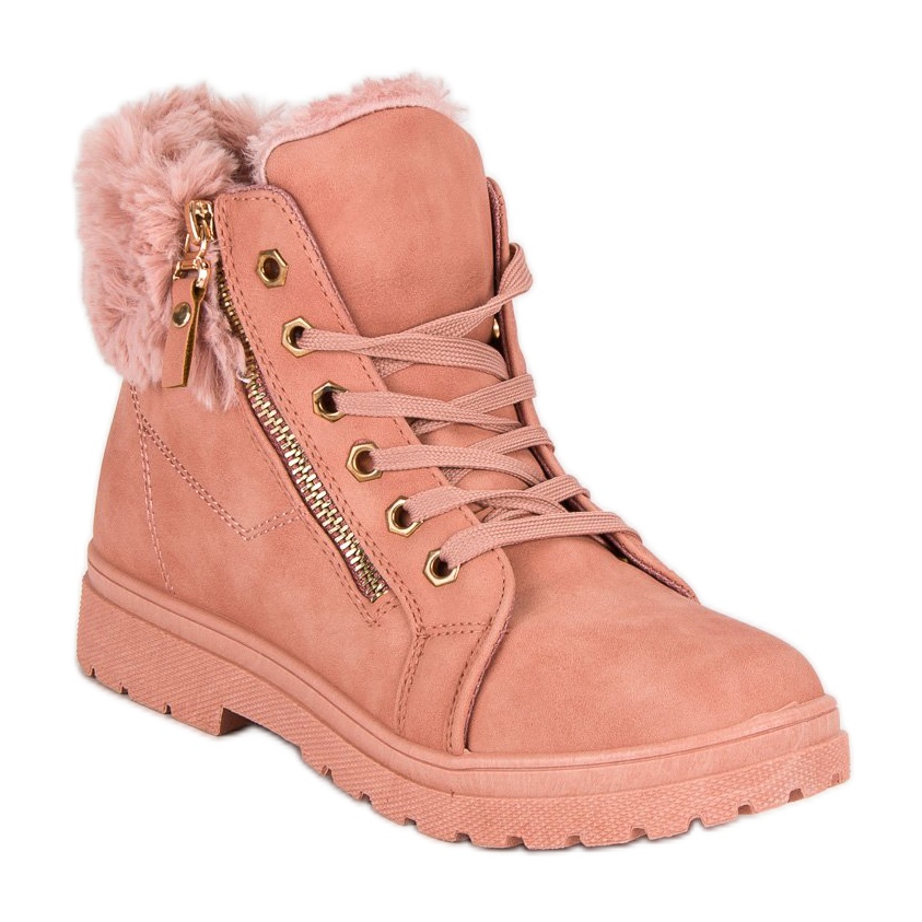 Fabriquées en daim écologique, les bottes se caractérisent par une haute qualité et une durabilité élevée. La teinte rose leur confère un caractère subtil et féminin qui se marie parfaitement avec différents styles. Le laçage et la fermeture éclair latérale facilitent non seulement l'enfilage, mais garantissent également un ajustement stable au pied, ce qui est extrêmement important au quotidien.
