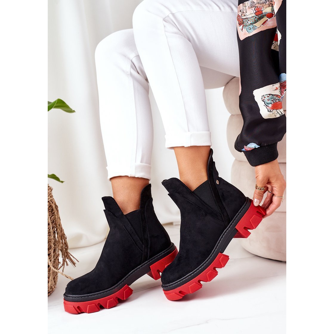 Découvrez un style et un confort uniques avec les bottines Chelsea isolées PS1 en noir et rouge ! Ces chaussures élégantes pour femmes sont fabriquées en éco-daim de haute qualité, ce qui les rend superbes et en même temps respectueuses de l'environnement.