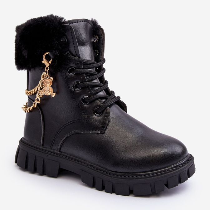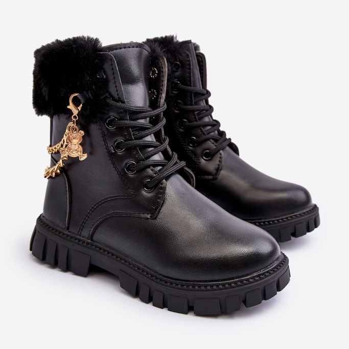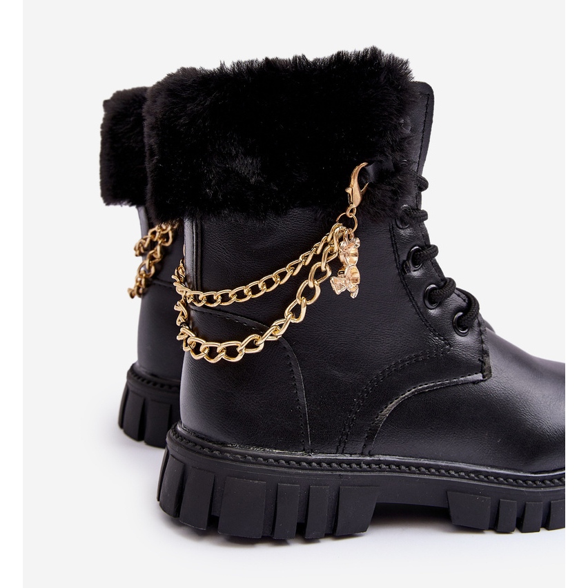 Détails: Bottines chaudes pour enfants en cuir avec chaîne, Noir Cadia le noir
