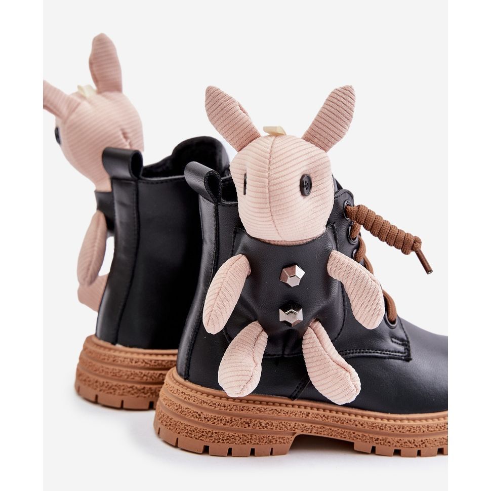 Détails: Bottines chaudes pour enfants en cuir avec fermeture éclair et ours en peluche Vinceza 36261 Noir le noir