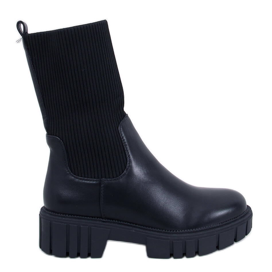 Des bottes "chaussettes" modernes sur une plate-forme stable (environ 2,5 cm), qui combinent parfaitement un look à la mode avec le confort quotidien. La tige élastique et assortie en tissu enveloppe le veau, et les éléments du cuir écologique mettent l'accent sur le caractère élégant de la chaussure. Modèle isolé - Un excellent choix pour les jours plus frais.