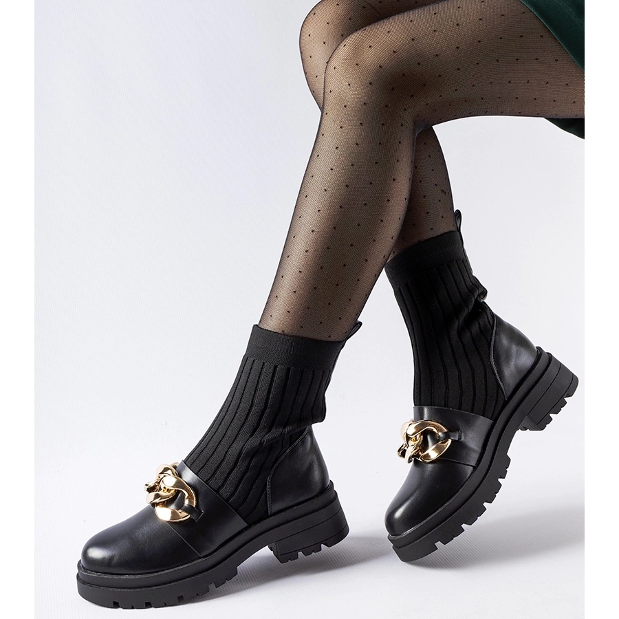 Inna marka Bottines chaussettes noires avec chaîne Giussago le noir