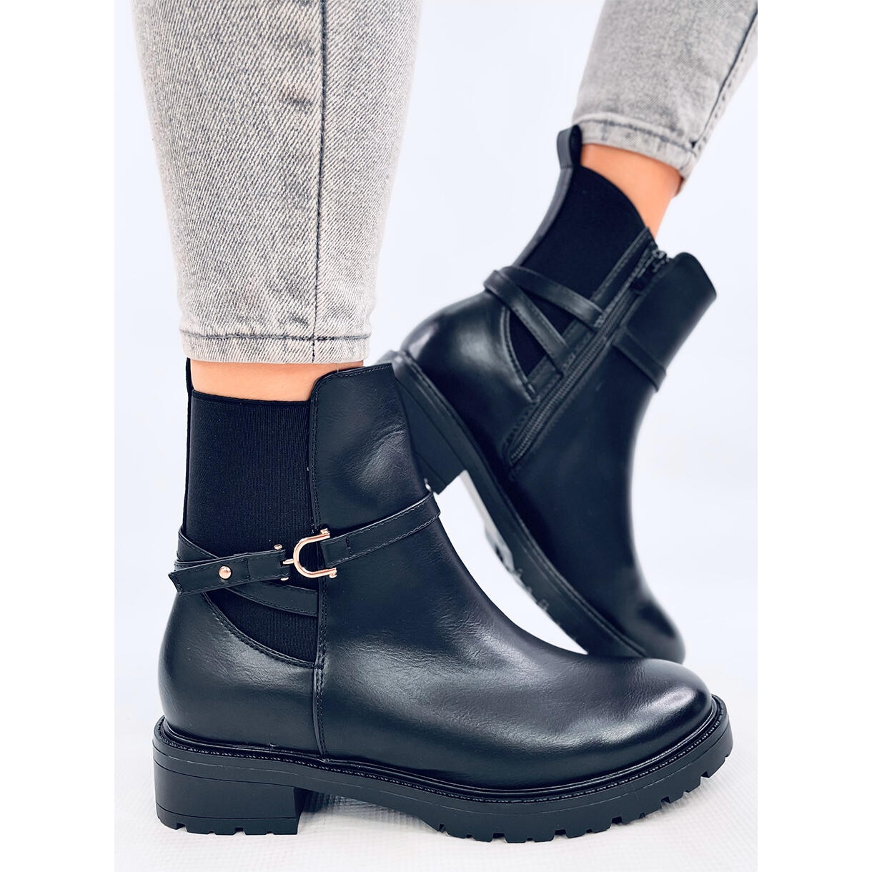 Fabriqué en cuir écologique, les chelseats noirs Royle sont non seulement à la mode, mais aussi respectueux de l'environnement. Un orteil rond et un talon plat avec une hauteur de 3,5 cm les rendent parfaits tous les jours, correspondant à différents styles - du décontracté à plus élégant.