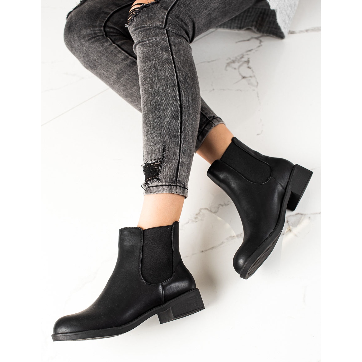 Découvrez les classiques qui ne se démodent jamais ! Les bottes Chelsea TRENDI sont un choix parfait pour les femmes qui apprécient le confort et le style. Ces bottines noires, confectionnées en cuir écologique de haute qualité, complèteront parfaitement votre style de tous les jours en y ajoutant de l'élégance.