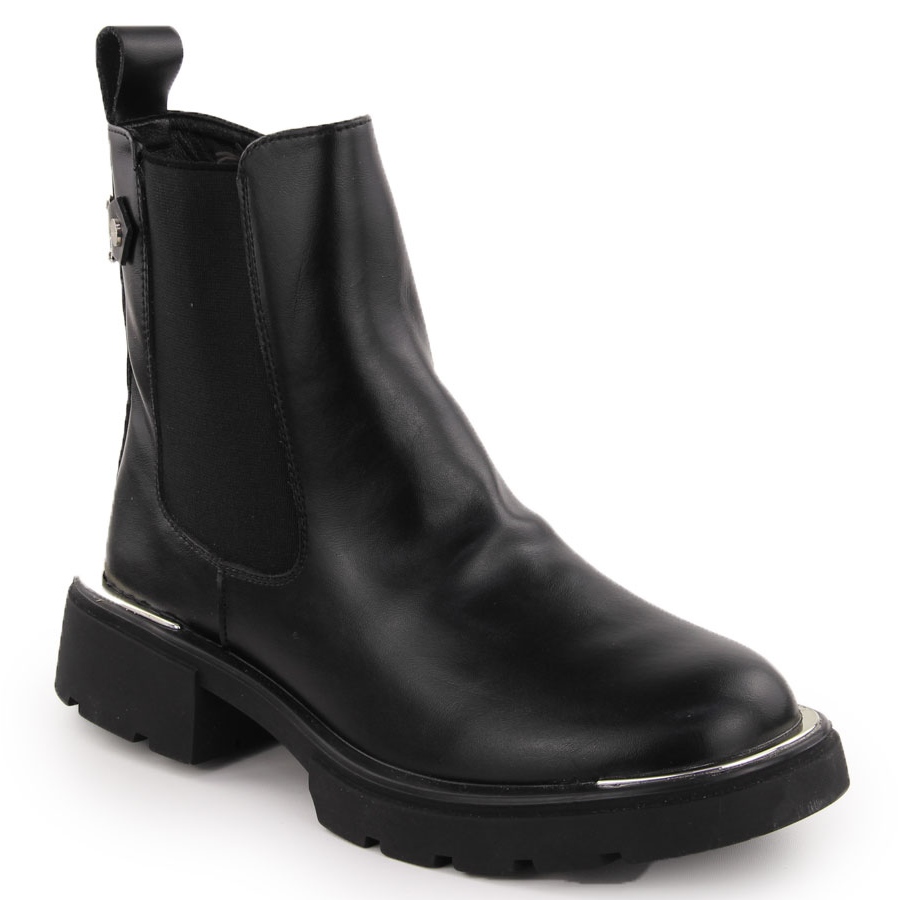 Détails: Bottines Chelsea en cuir pour femme, noir Goe OO2N4147