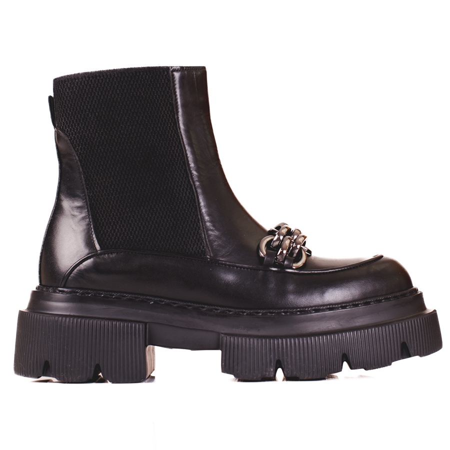 Détails: Bottines Chelsea en cuir pour femme sur la plateforme Shelovet noir