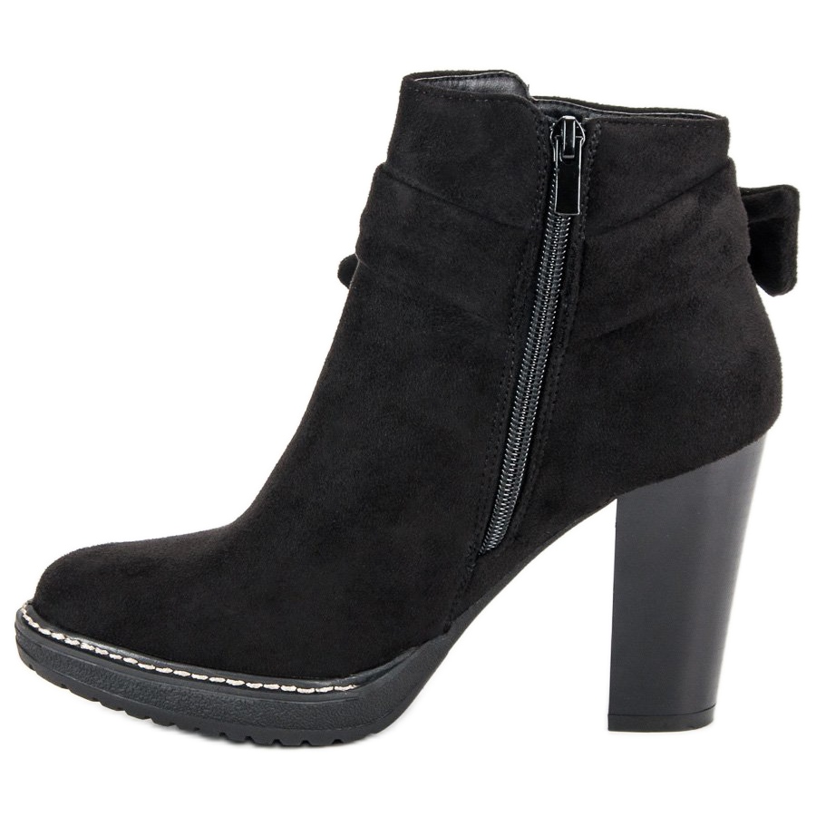 Les chaussures sont montées sur un talon bloc de 9 cm de haut, qui allonge optiquement les jambes et affine la silhouette. La fermeture éclair latérale les rend non seulement plus faciles à enfiler, mais ajoute également de la fonctionnalité. De plus, un élégant nœud placé sur le côté de la chaussure ajoute un accent subtil qui souligne le charme féminin.
