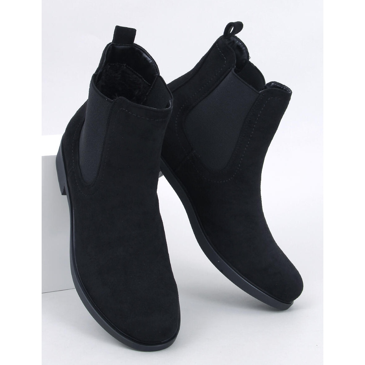 L'intérieur des chaussures est bordé d'une fourrure délicate, ce qui garantit le confort même pendant les jours plus froids. Une semelle plate et un nez rond en font le choix parfait quotidiennement, permettant de longues promenades sans crainte de fatigue. La hauteur de la cheville met davantage l'accent sur l'élégance, et le manque de modèle vous fait facilement les combiner avec diverses stylisations - du décontracté à plus élégant.
