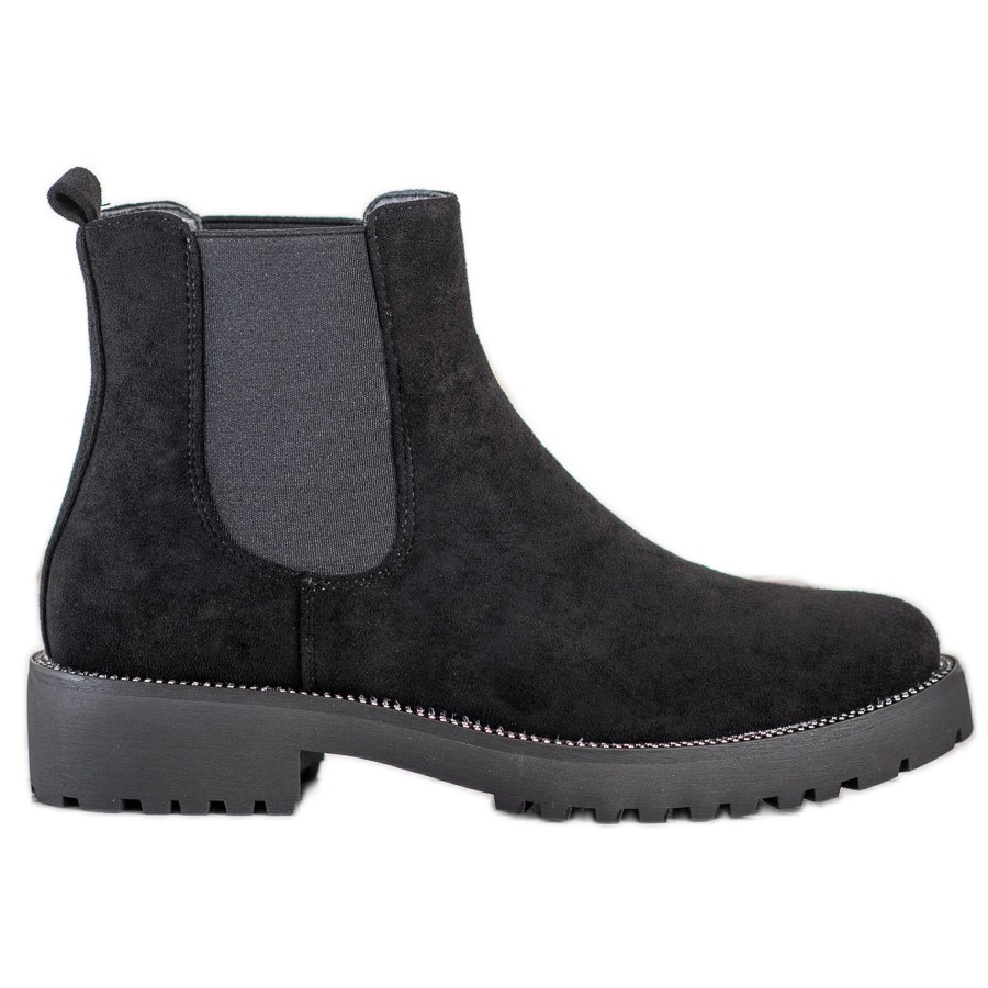 Découvrez les bottines Chelsea élégantes et confortables de Bello Star, qui seront parfaites pour tout style de tous les jours. Ces bottines en daim noir, confectionnées en cuir écologique imitant le daim, allient charme classique et style moderne. Grâce à leur isolation, ils constituent un choix idéal pour les journées les plus froides de l'automne et de l'hiver.