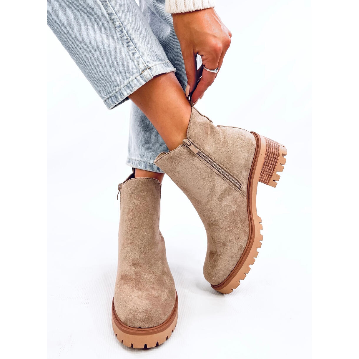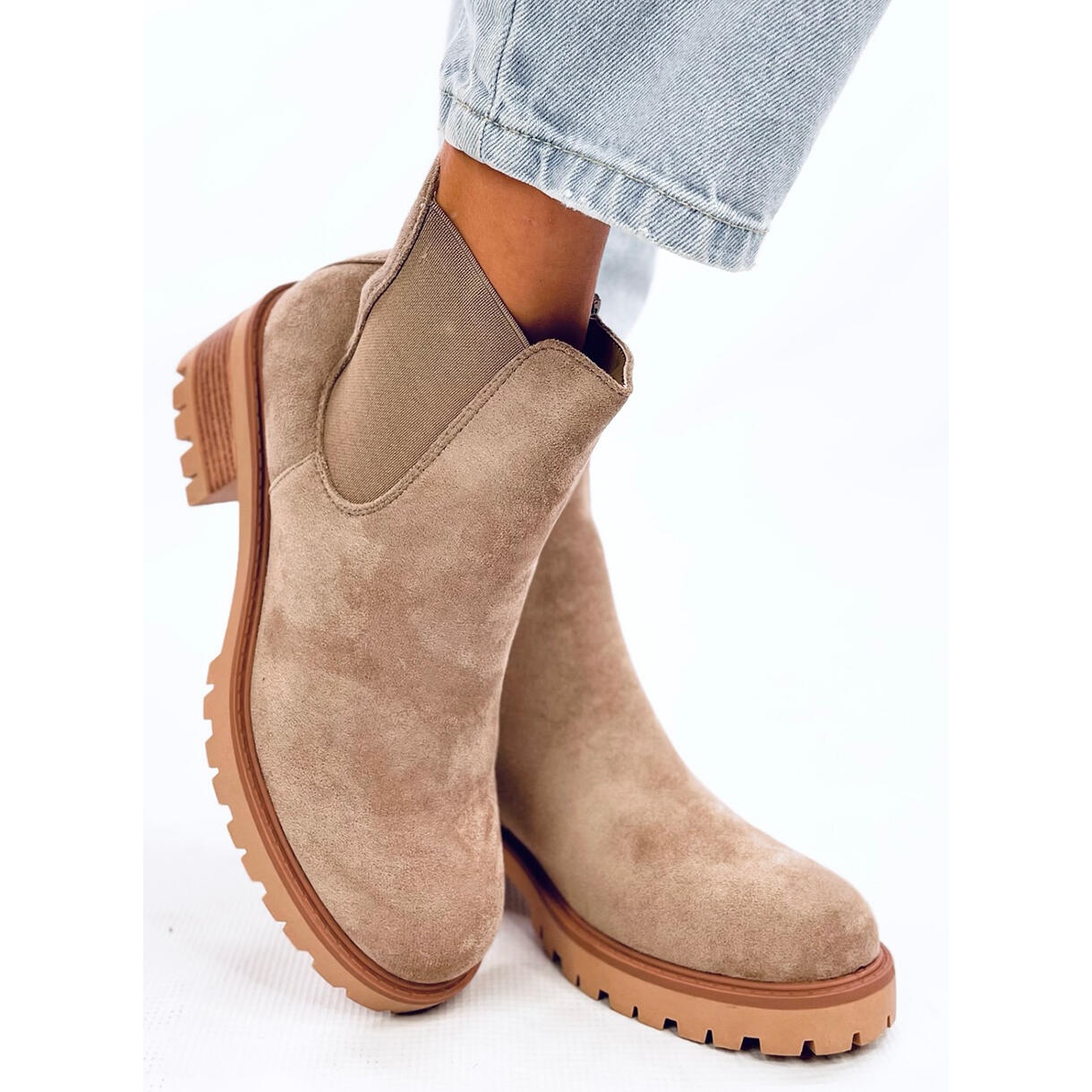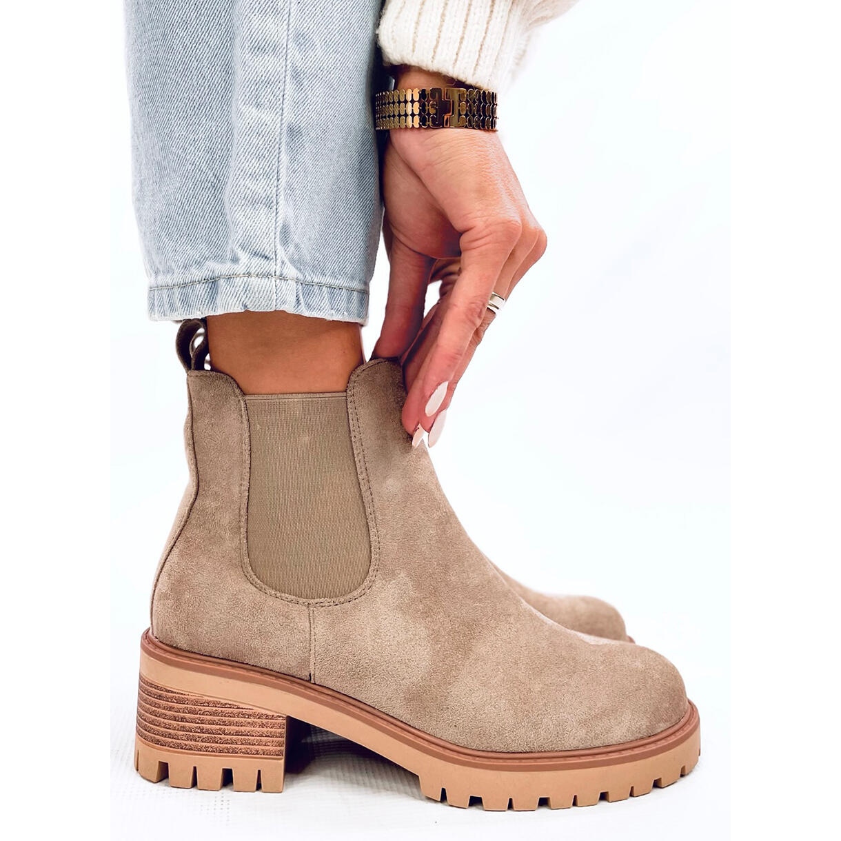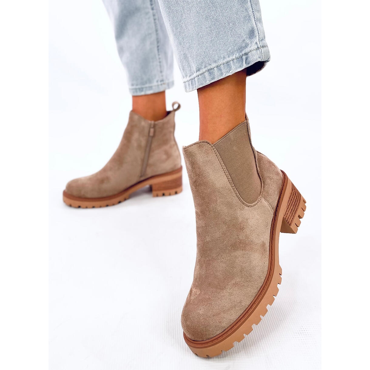Inna marka Bottines Chelsea en daim kaki à talon haut beige