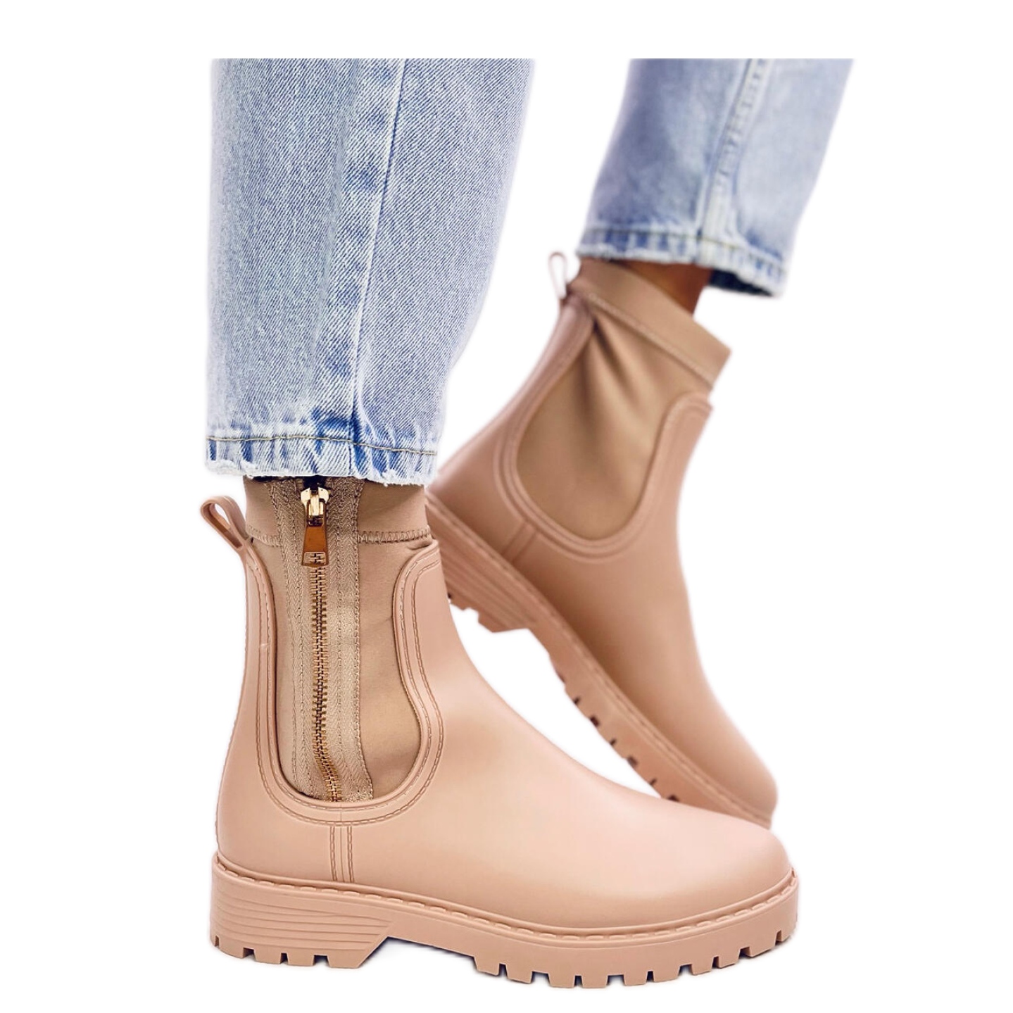Les bottes féminines, ci-dessous, les bottes beige Chelsea de la marque Inello sont la combinaison parfaite de fonctionnalités et de design élégant. Ces galoshes en caoutchouc, en matériaux de haute qualité, offrent un confort et une protection contre l'humidité les jours de pluie. Une coupe classique avec un curseur doré élégant placé sur le côté de la tige leur donne le style et la modernité.