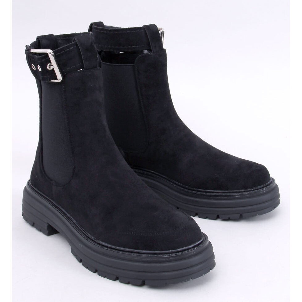 Des bottes modernes et noires carls jodhpur en daim écologique sont une combinaison parfaite de style et de confort. Le modèle de la cheville sur une semelle plate épaisse avec un nez légèrement arrondie est idéal pour les stylisations décontractées et plus ordonnées. La fourrure supplémentaire à l'intérieur offre un réchauffement agréable les jours plus frais.
