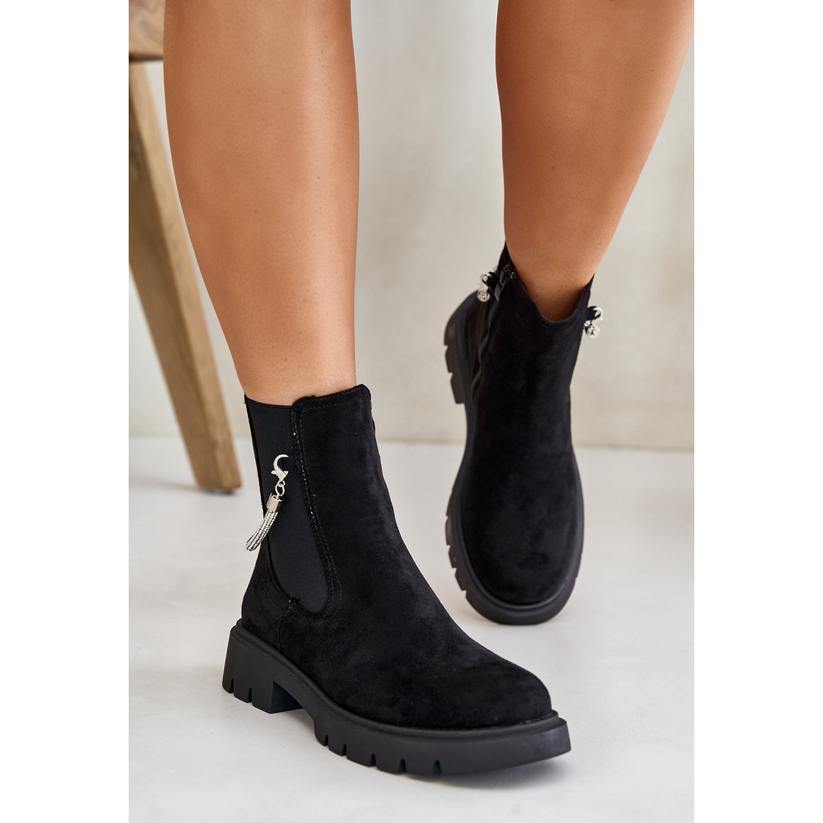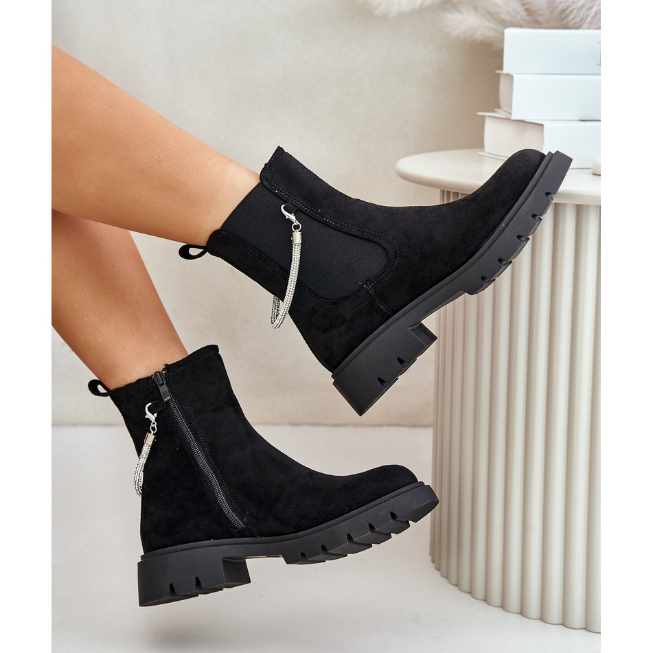 Détails: Bottines Chelsea isolées avec fermeture éclair et bride décorative, Noir Labenne le noir