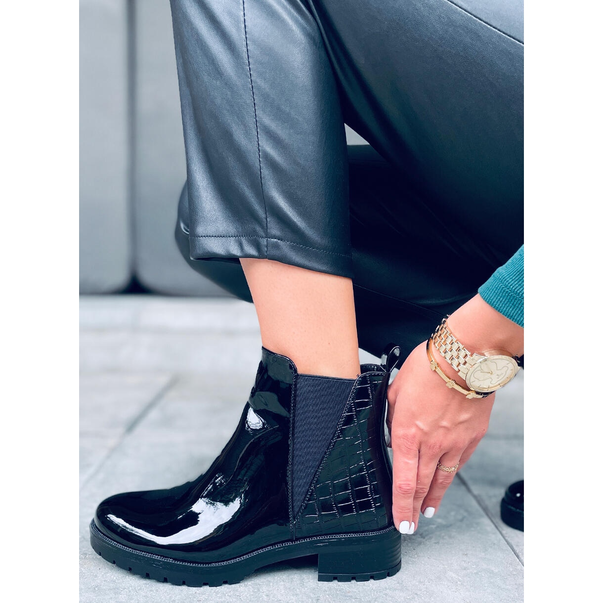 Les élégantes bottes Chelsea isolées Duni Black en noir classique sont le choix parfait pour les femmes qui apprécient l'élégance et le confort au quotidien. Ces bottes vernies se distinguent non seulement par leur design intemporel, mais aussi par un motif peau de serpent tendance qui leur confère un caractère unique.