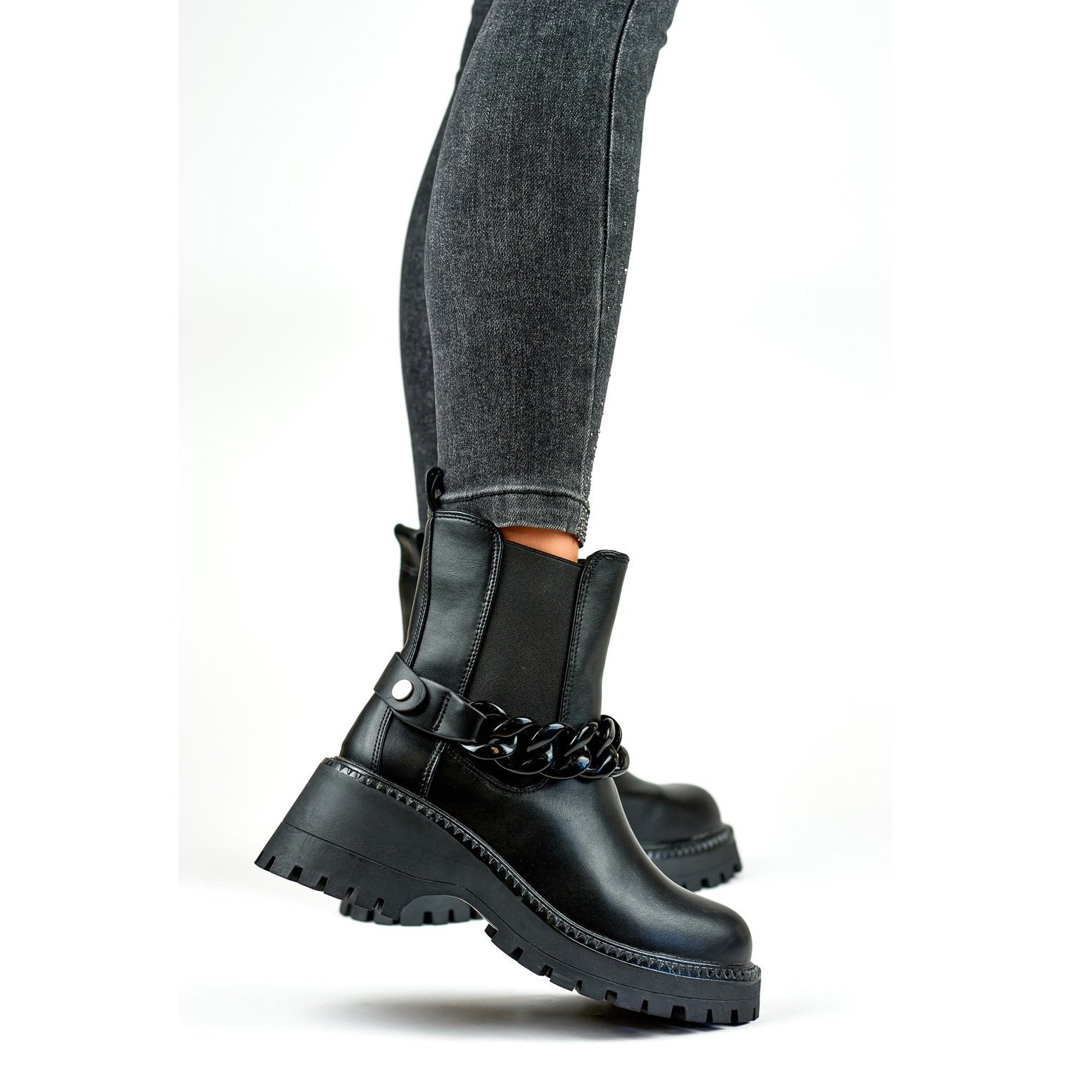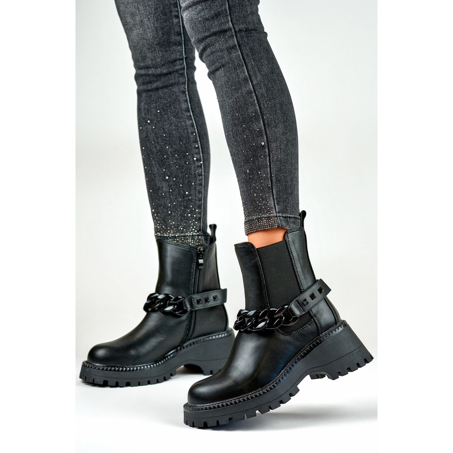 La tige de 14 cm de haut fournit un support solide en cube, qui est non seulement esthétique, mais aussi pratique. Grâce à cela, les bottes de Jodhpur mettent l'accent sur la longueur des jambes, ajoutant une élégance exceptionnelle. L'intérieur des chaussures est recouvert de cuir écologique, qui garantit le confort de porter toute la journée. Un avantage supplémentaire des bottes de Jodhpur est l'isolation sous la forme d'une couverture de chaussures, qui protégera vos pieds contre le froid les jours plus froids.