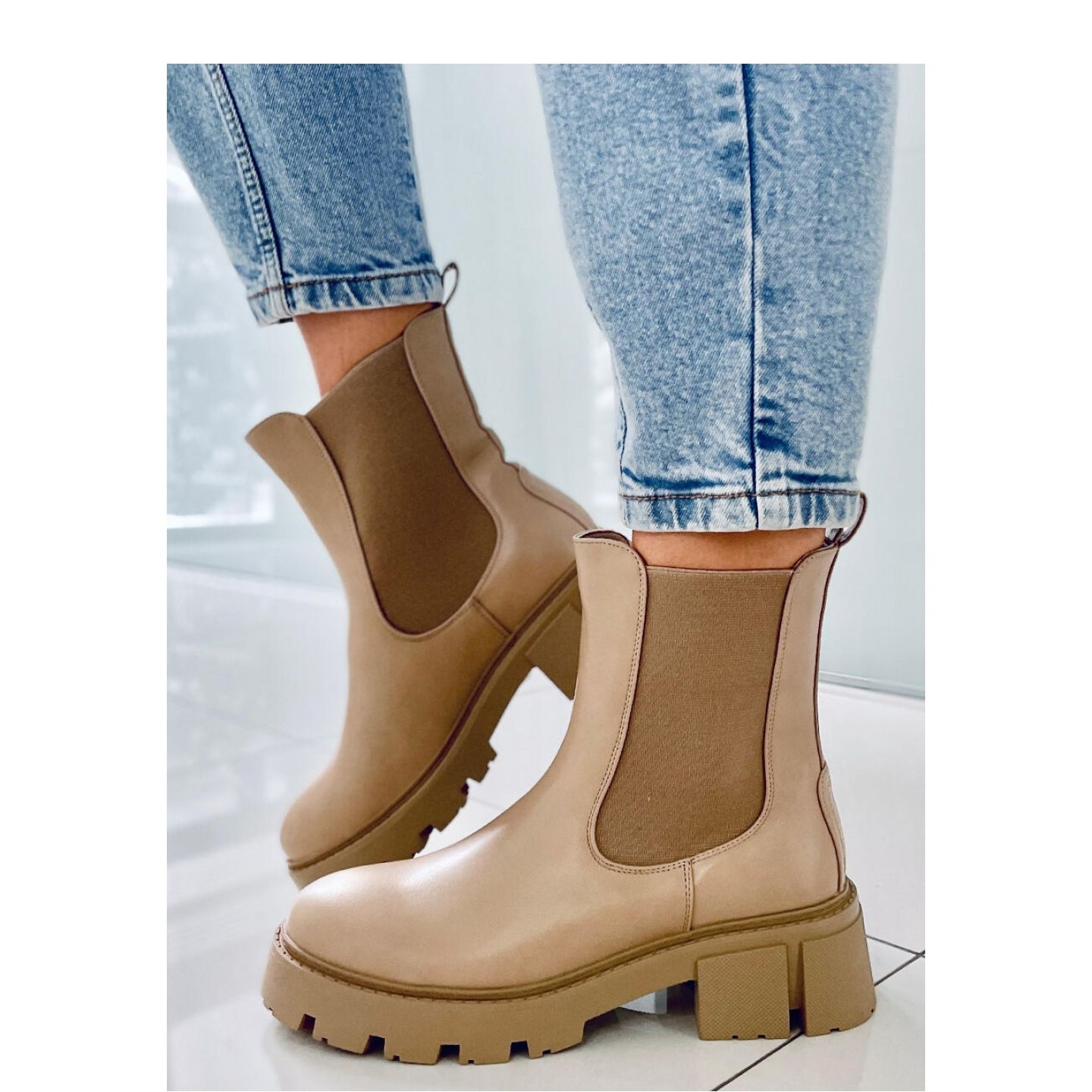 Détails: Bottines Chelsea montantes Rumer Kaki - Inello beige