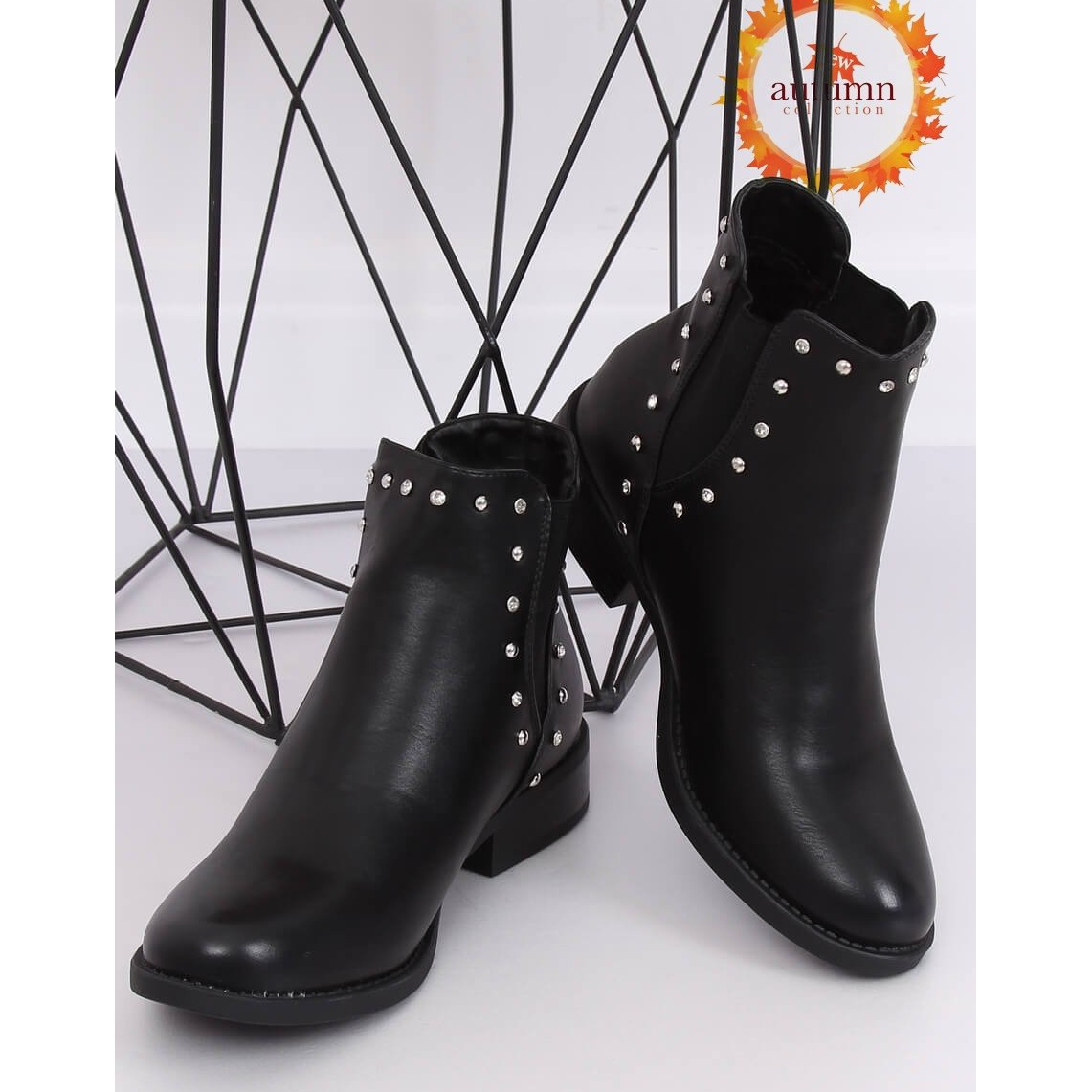 Détails: Bottines Chelsea noires à clous noirs HQ927 Noir