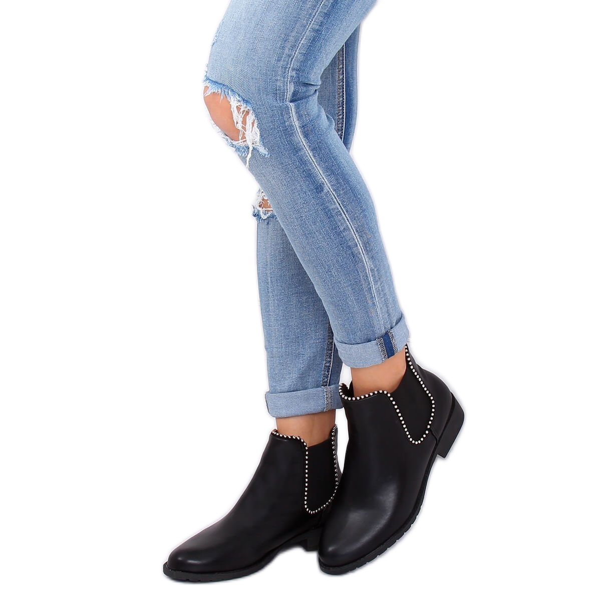 Détails: Bottines Chelsea noires à perles Q-30 Noir