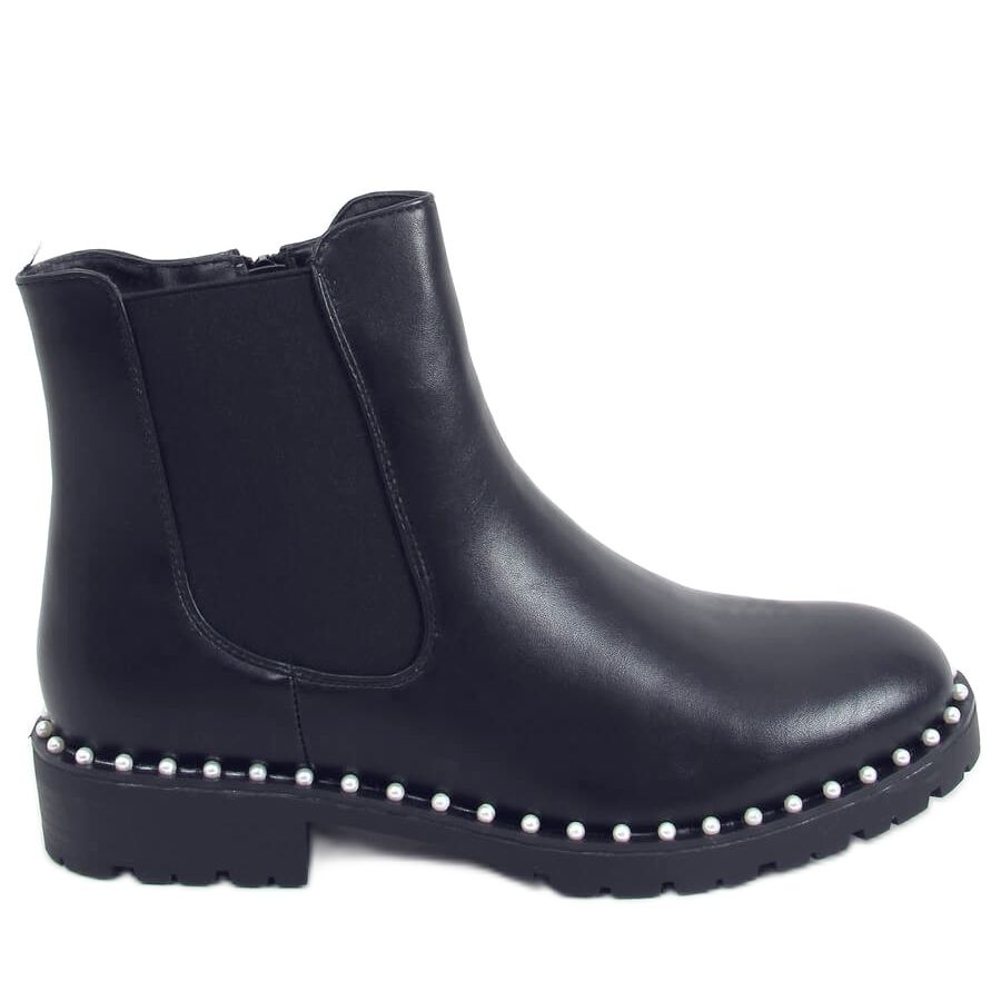 Détails: Bottines Chelsea noires avec perles HQ247 Noir le noir
