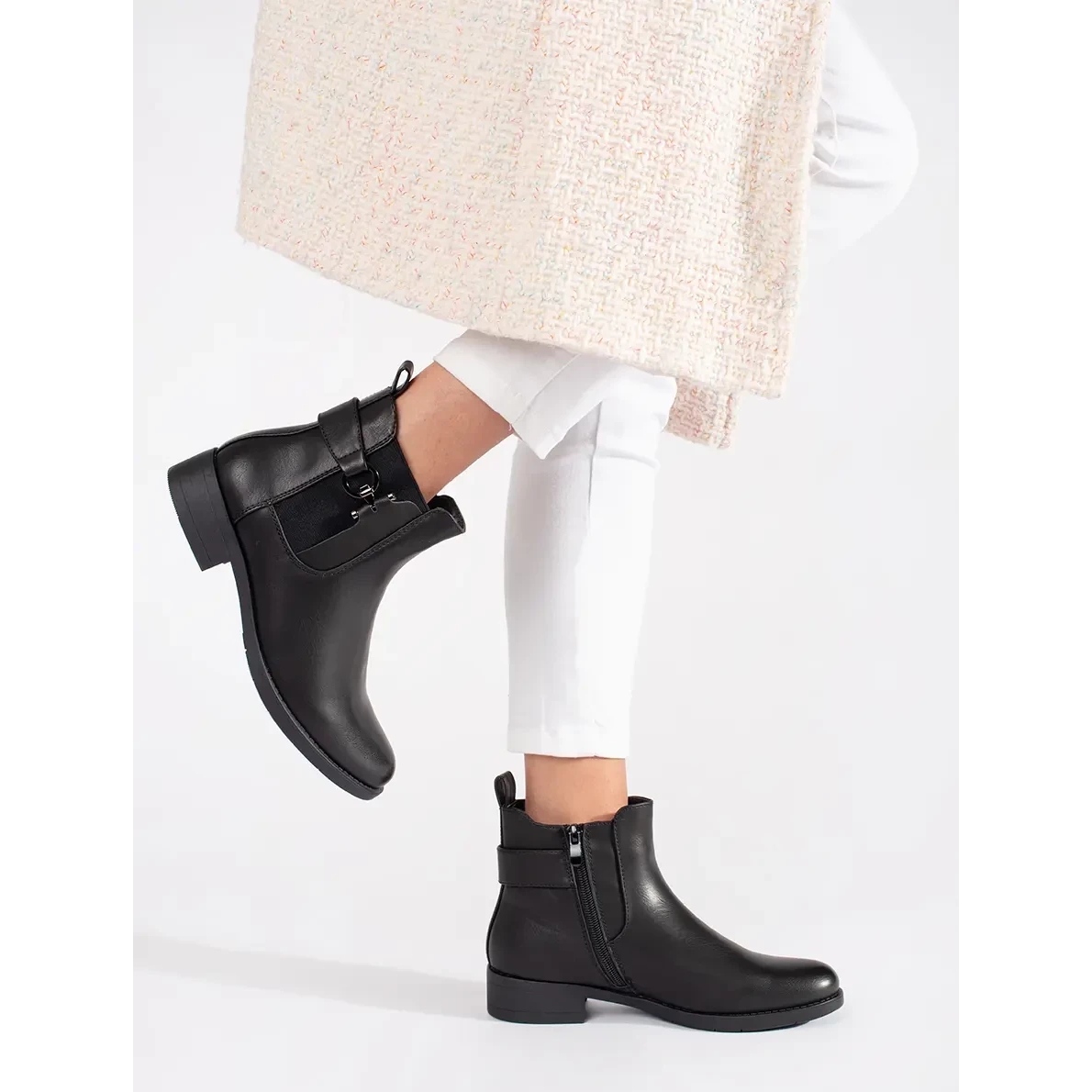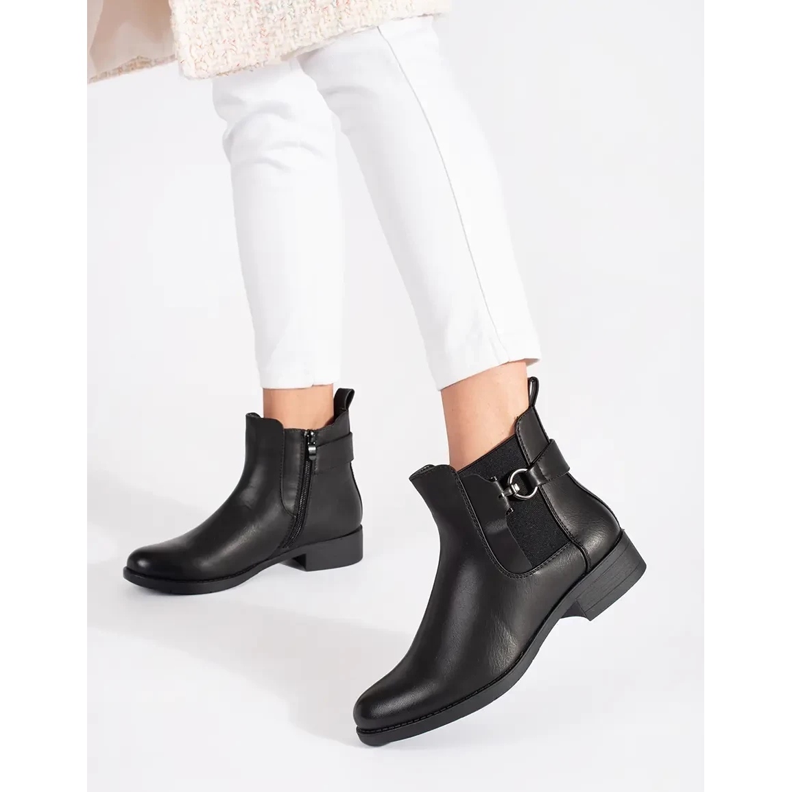 Les chelseats noirs ont un talon construit et un nez rond, ce qui leur donne un personnage classique. Ils ont une semelle en plastique lisse, garantissant une facilité de mouvement et de stabilité. Grâce au talon plat avec une hauteur de 3 cm, ils sont un excellent choix pour les femmes qui apprécient le confort sans abandonner un look à la mode.
