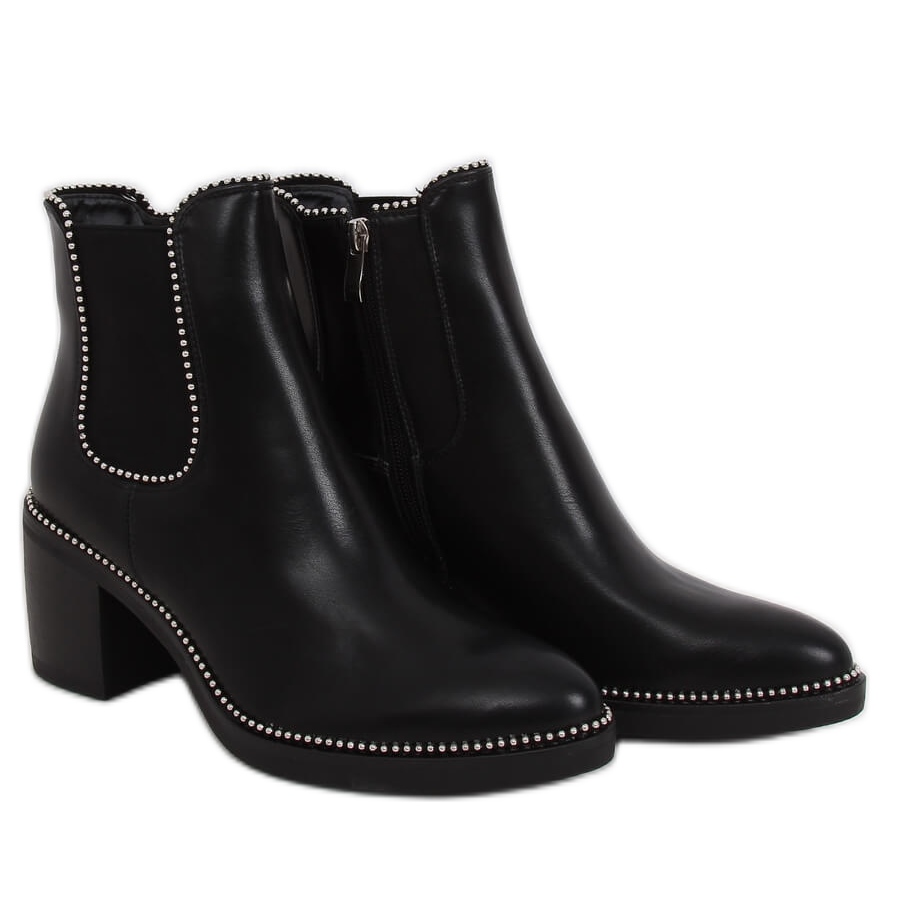 Ces bottines accrocheuses ont une couleur noire classique qui se marie parfaitement avec une variété de tenues, des tenues de tous les jours aux plus élégantes. Un avantage supplémentaire réside dans les détails modernes sous la forme de boules argentées, qui décorent subtilement la zone autour des inserts en caoutchouc et de la semelle, donnant aux chaussures un caractère unique.