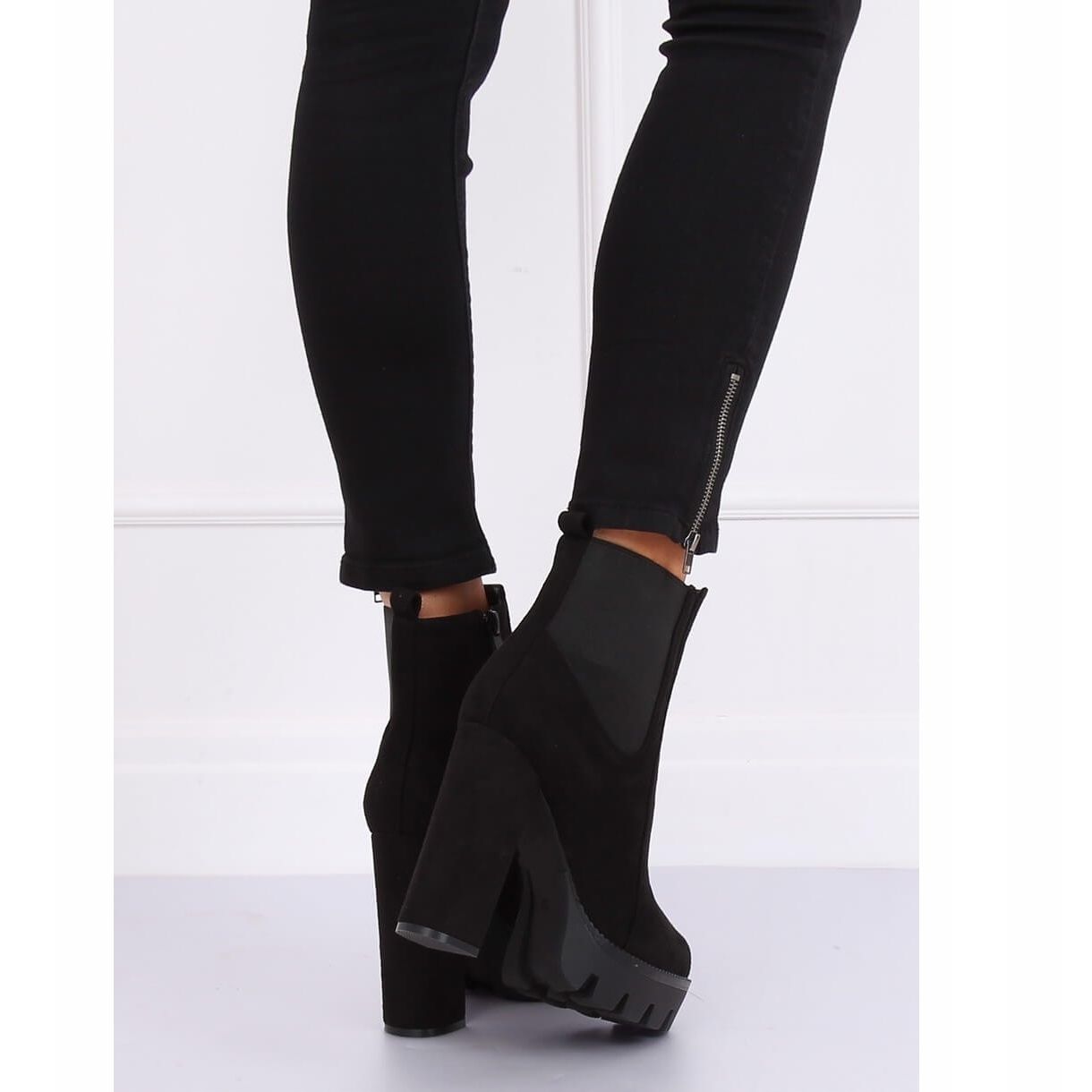 Nous vous présentons les bottines Chelsea noires BM282 - des bottines élégantes pour femmes qui complèteront parfaitement votre garde-robe. La hauteur du talon de 11,5 cm et la plateforme de 3 cm assurent non seulement un look tendance, mais aussi une stabilité et un confort de port. La coupe classique avec un insert élastique permet aux bottines Chelsea de s'adapter parfaitement à la jambe, et la fermeture éclair sur le côté facilite l'enfilage et le retrait.