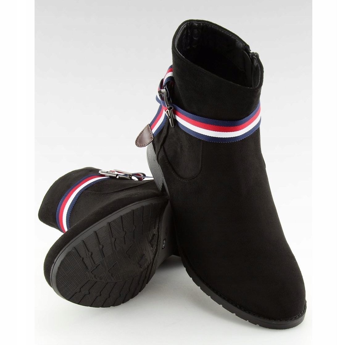 Découvrez l'élégance et le confort avec les bottines Chelsea noires pour femme 99-150 Black. Ces bottes élégantes à la coupe classique impressionnent non seulement par leur design simple mais aussi tendance. L'élément clé qui attire l'attention est le ruban multicolore qui s'enroule efficacement autour de la cheville, ajoutant un caractère unique aux chaussures.