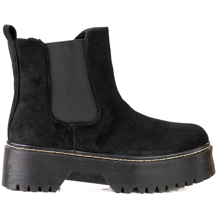 Détails: Bottines Chelsea noires pour femmes sur la plateforme Shelovet en daim écologique le noir