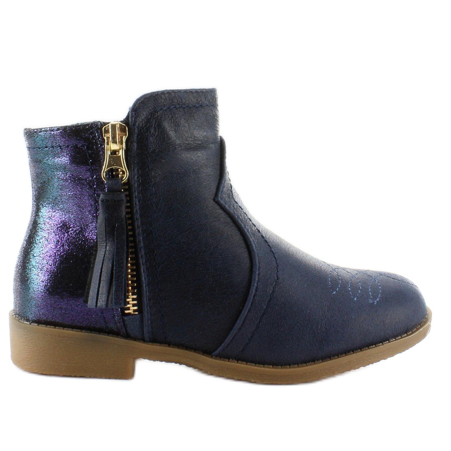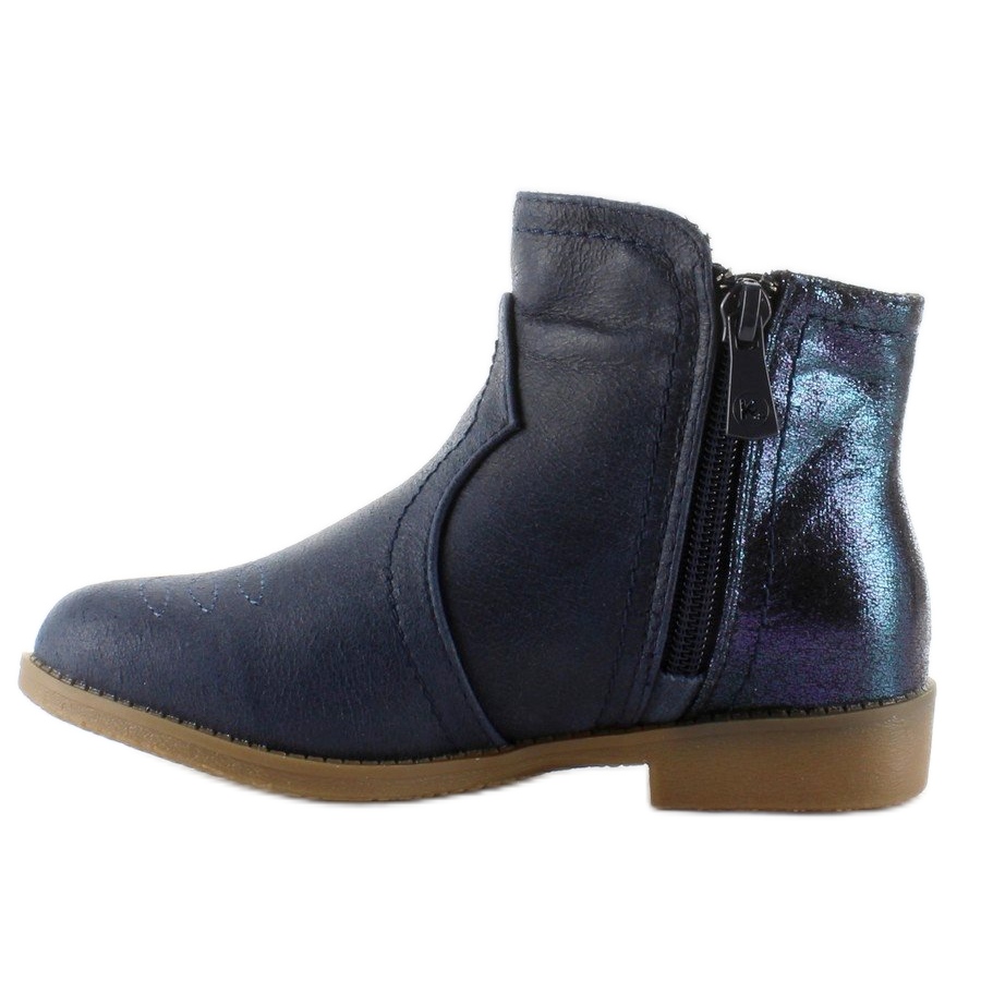 Nous vous présentons les bottines élégantes pour enfants K1647301 Marino en bleu marine, qui compléteront parfaitement le style quotidien de votre fille. Ces chaussures élégantes se distinguent par leur design unique, avec une matière brillante sur le talon et une subtile broderie décorative sur les orteils.