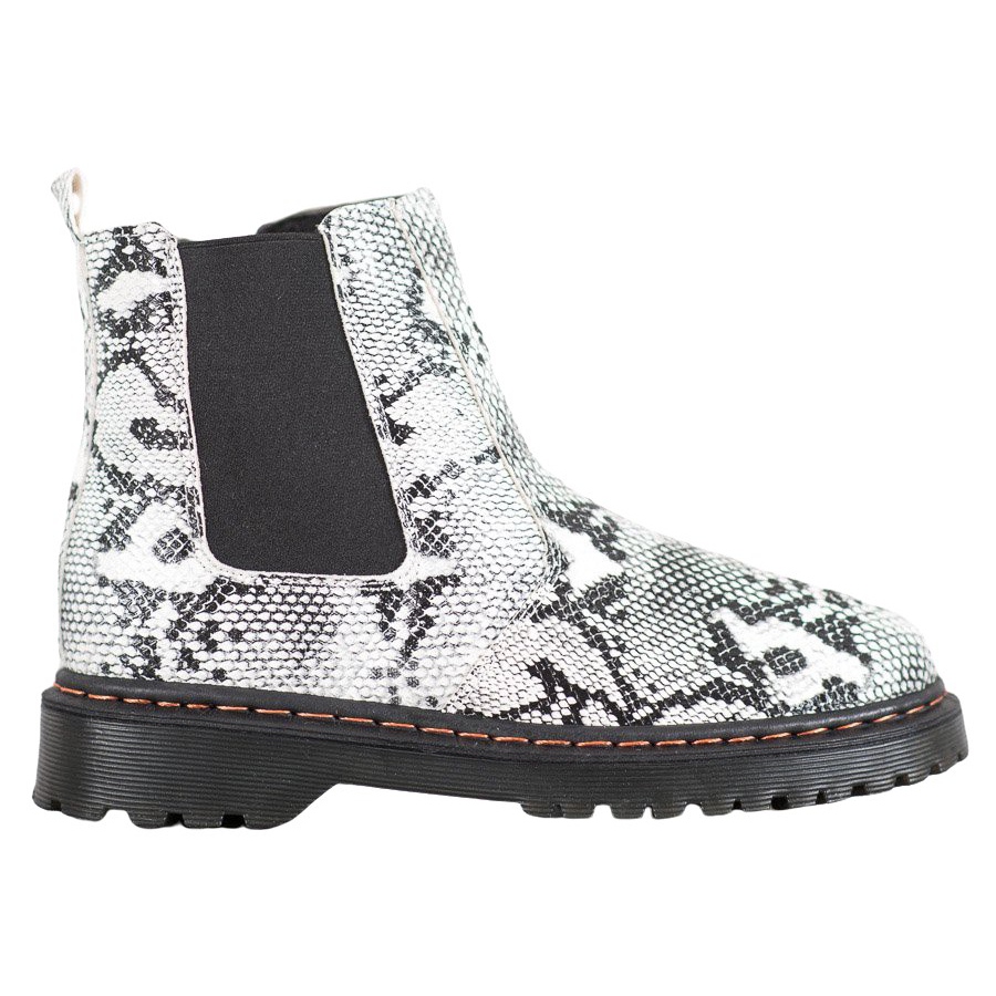 Les bottines Chelsea sont disponibles en deux couleurs classiques : le noir et le blanc, ce qui leur permet de s'adapter facilement à n'importe quelle garde-robe. Le motif dominant, inspiré des motifs animaliers, leur confère un caractère unique, parfait pour les amateurs de style rock et décontracté.