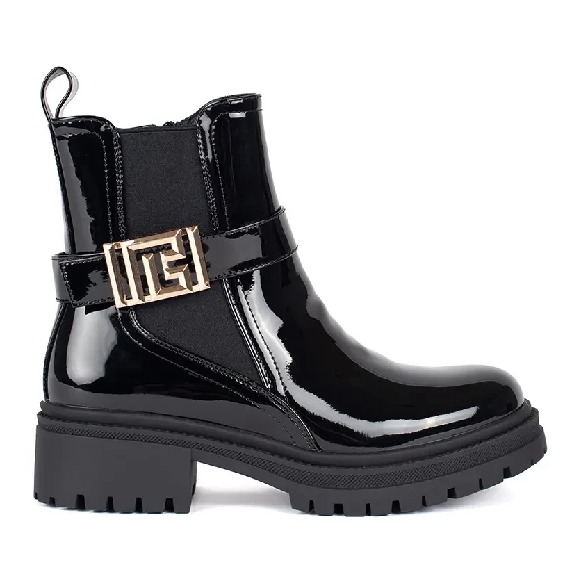 - Modèle: Bottines Chelsea vernis noires pour femme