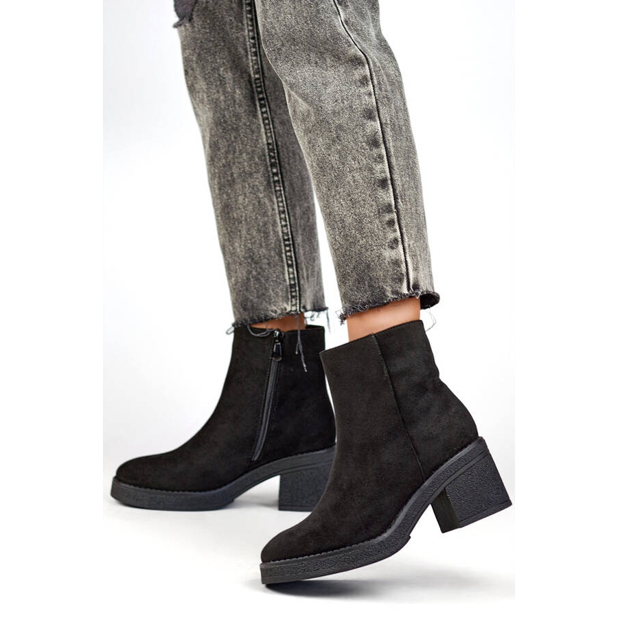 Détails: Bottines classiques à talons hauts en daim pour femme, noires MS1508B