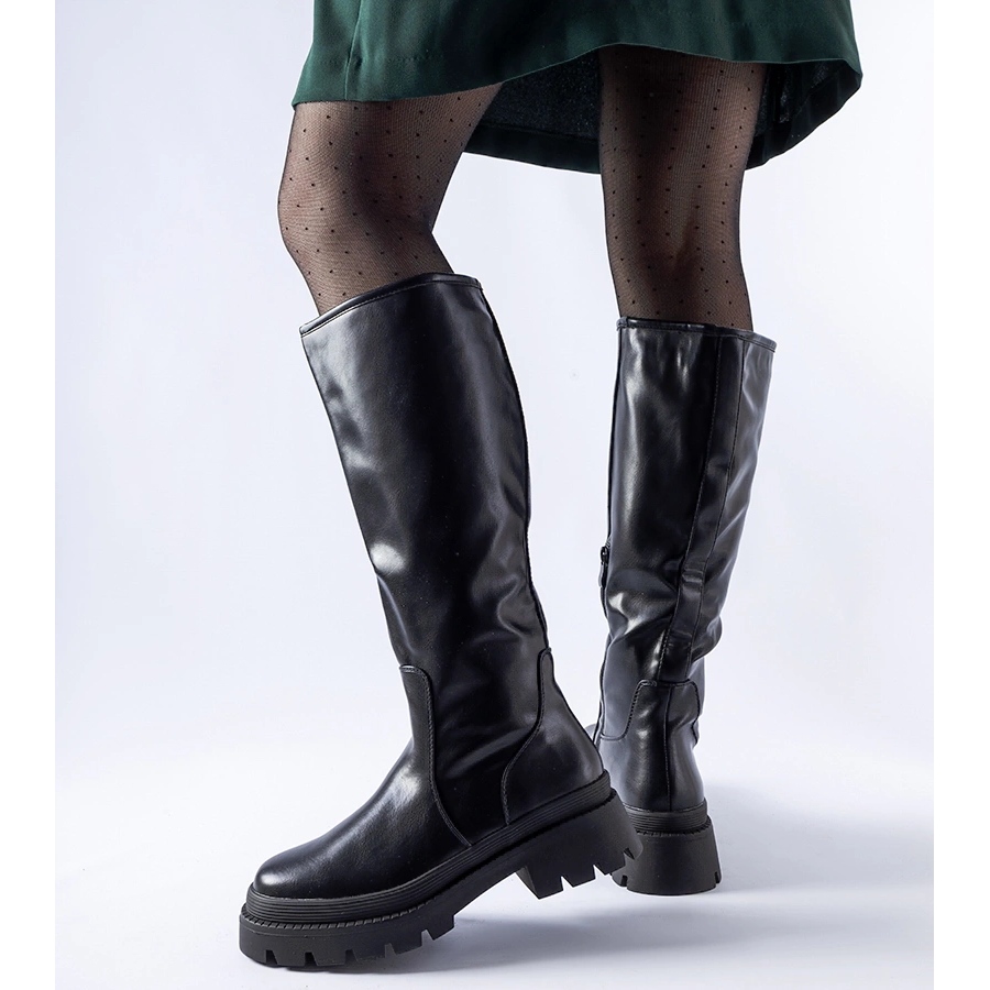 Les bottes plates classiques noires sont un choix élégant et pratique pour l’hiver. Fabriqués en cuir écologique, ils sont non seulement élégants, mais aussi durables. Grâce au talon plat, elles assurent stabilité et confort lors de la marche. La hauteur de ces bottes pour femmes est de 43 cm, ce qui signifie qu'elles arrivent jusqu'aux genoux, offrant ainsi une protection et une chaleur supplémentaires. Bien que les chaussures ne soient pas isolées, elles sont suffisamment épaisses pour vous garder au chaud.