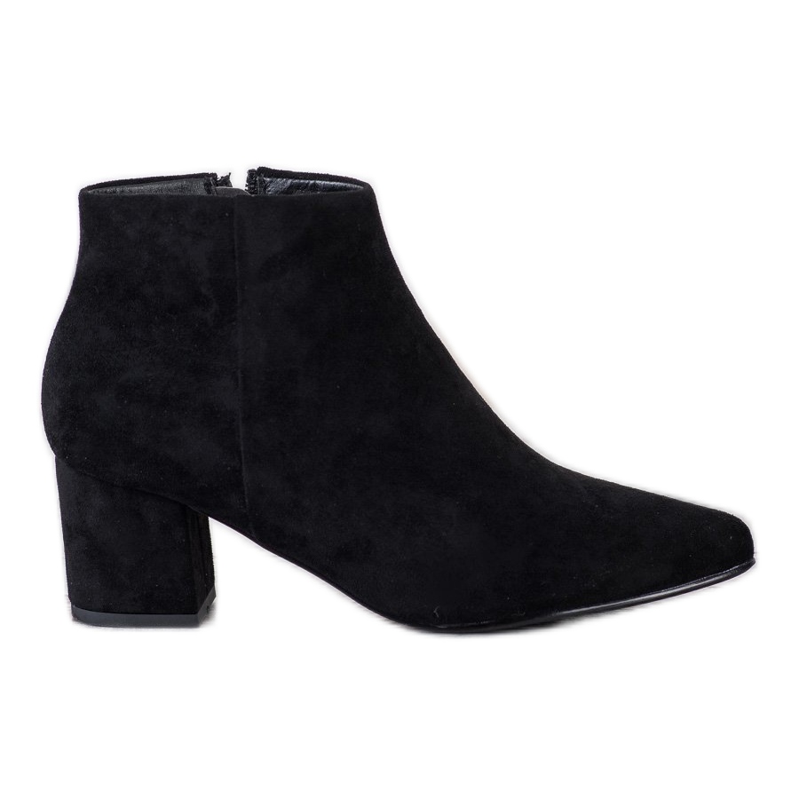 Les bottines classiques VINCEZA noires sont un incontournable dans la garde-robe de chaque femme. Leur coupe intemporelle jusqu'à la cheville, finie avec du cuir écologique imitant le daim, en fait une solution idéale pour les styles élégants et quotidiens. Ils se marient parfaitement avec des jeans, des robes et divers ensembles pour toutes les occasions.