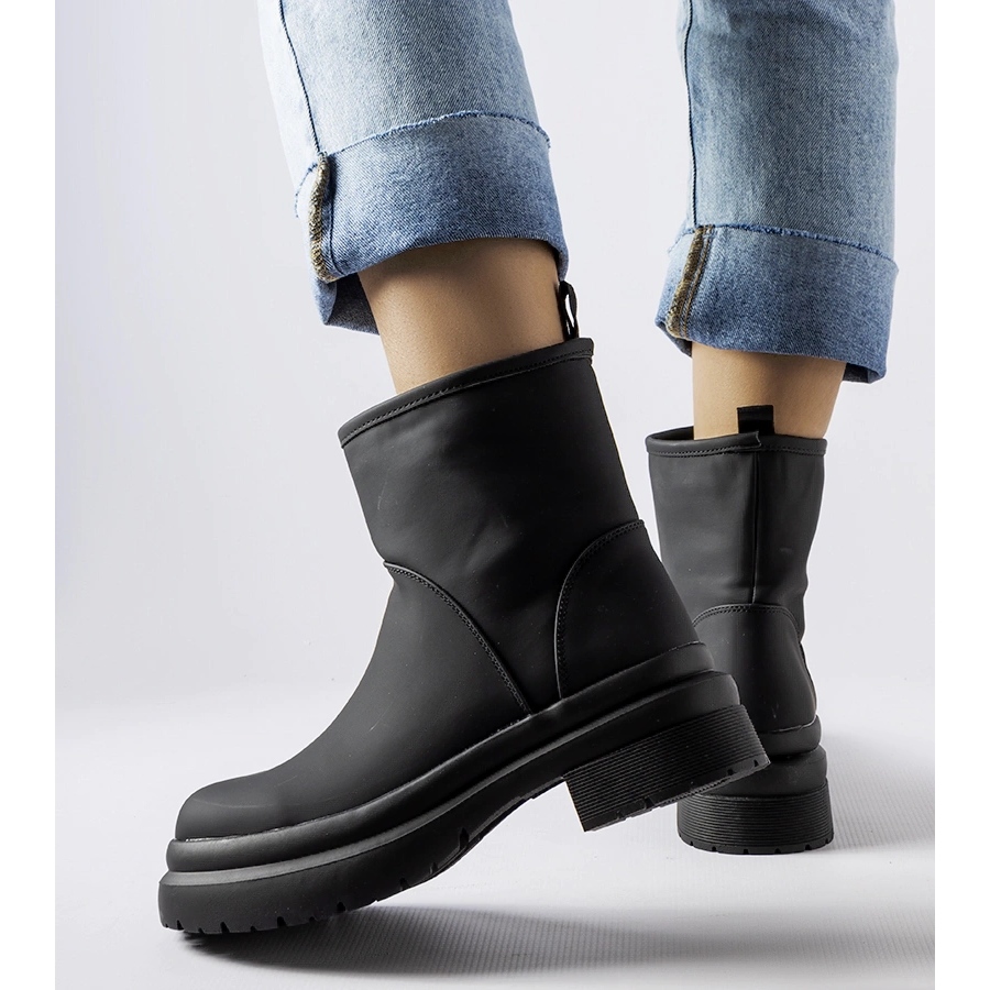 Les bottes en caoutchouc noir Clotilde sont des bottes isolées à enfiler pour femmes. Ils sont fabriqués en cuir écologique durable, plus résistant à l'humidité et à la neige. Leur hauteur cheville et leur bout rond leur confèrent un caractère mode, et la semelle intérieure isolée assure confort thermique et isolation contre le froid. Parfait pour les journées d'hiver pour les femmes qui veulent se sentir à l'aise et élégantes. Selon le fabricant, elles appartiennent à la catégorie « Femme » Femme » Bottes », ont une numérotation standard et mesurent 21 cm de hauteur.