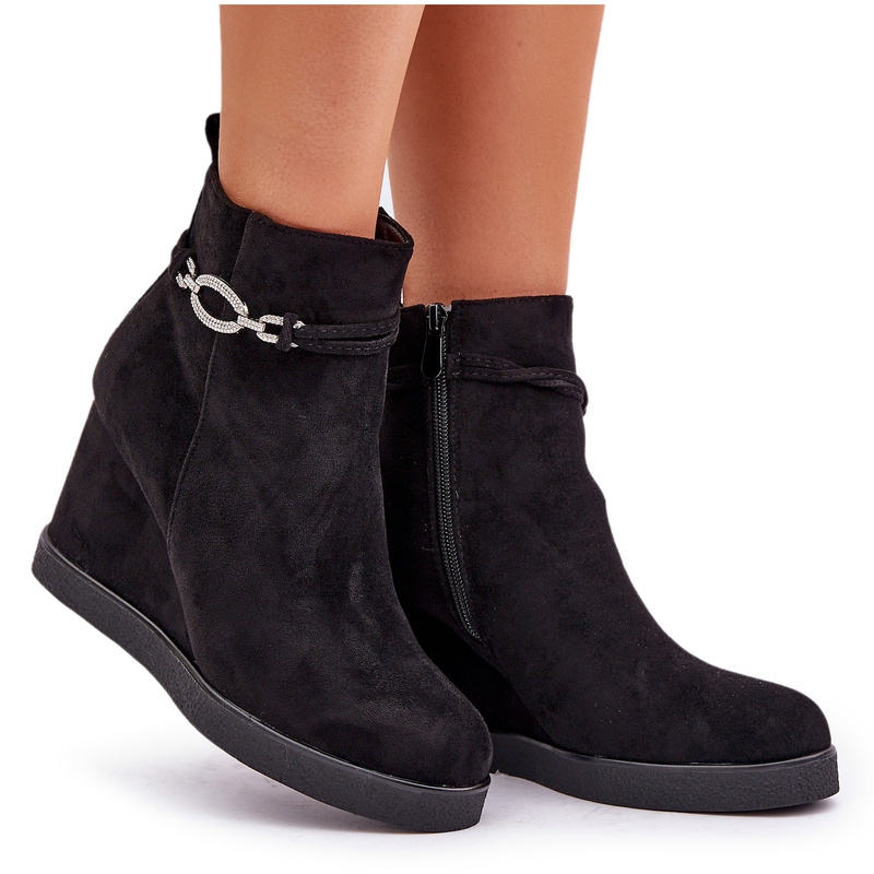 Inna marka Bottines compensées à bride décorative, noir le noir