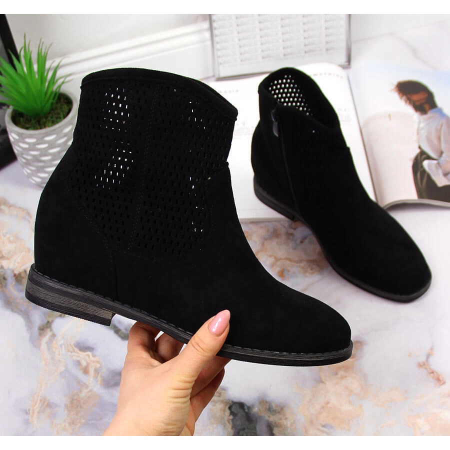 Détails: S.Barski Bottines compensées ajourées noires pour femme de S. Barski