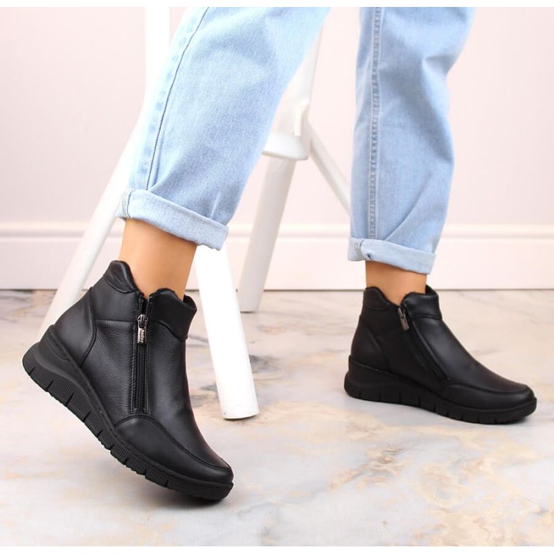 Bottines compensées en cuir confortables et isolées Helios W H594A, noir