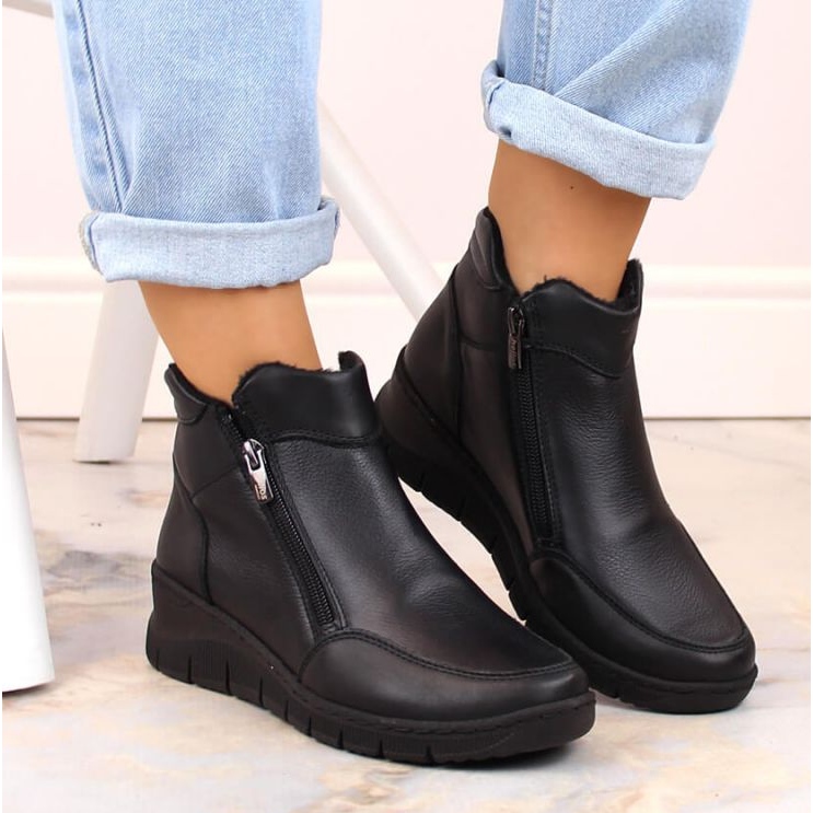 Détails: Bottines compensées en cuir confortables et isolées Helios W H594A, noir le noir