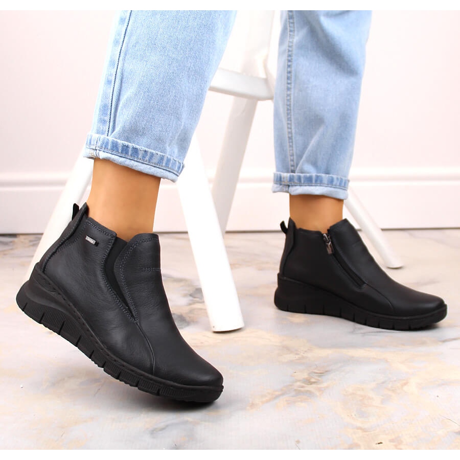 Détails: Bottines compensées en cuir pour femme, confortables et isolées, noires Helios 552 le noir