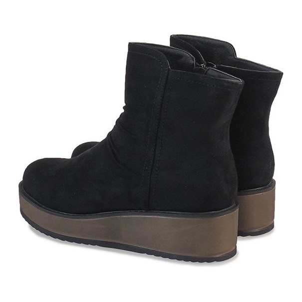 Les bottes compensées T122 sont disponibles dans l'emballage d'origine du fabricant, ce qui en fait une excellente idée cadeau. Que vous alliez faire du shopping, une promenade entre amis ou une réunion d'affaires, ces chaussures seront un excellent complément à n'importe quelle tenue. Choisissez les bottines T122 en daim noir et profitez d'un confort et d'un look tendance au quotidien !