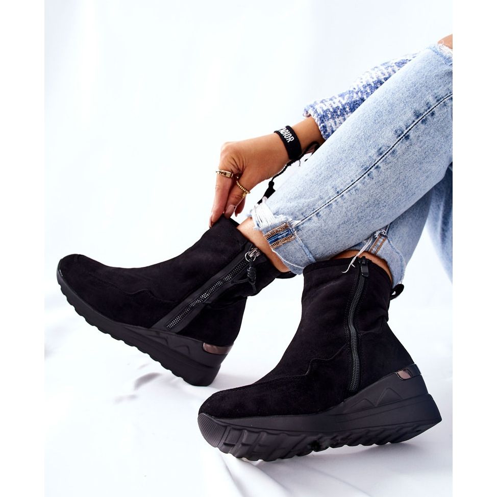 Ces bottines compensées offrent une stabilité grâce à la hauteur du talon de 6 cm et la hauteur supérieure de 14 cm. Il convient également de prêter attention à la numérotation discrète - nous vous suggérons de choisir une taille plus grande pour profiter d'un confort de port maximal.