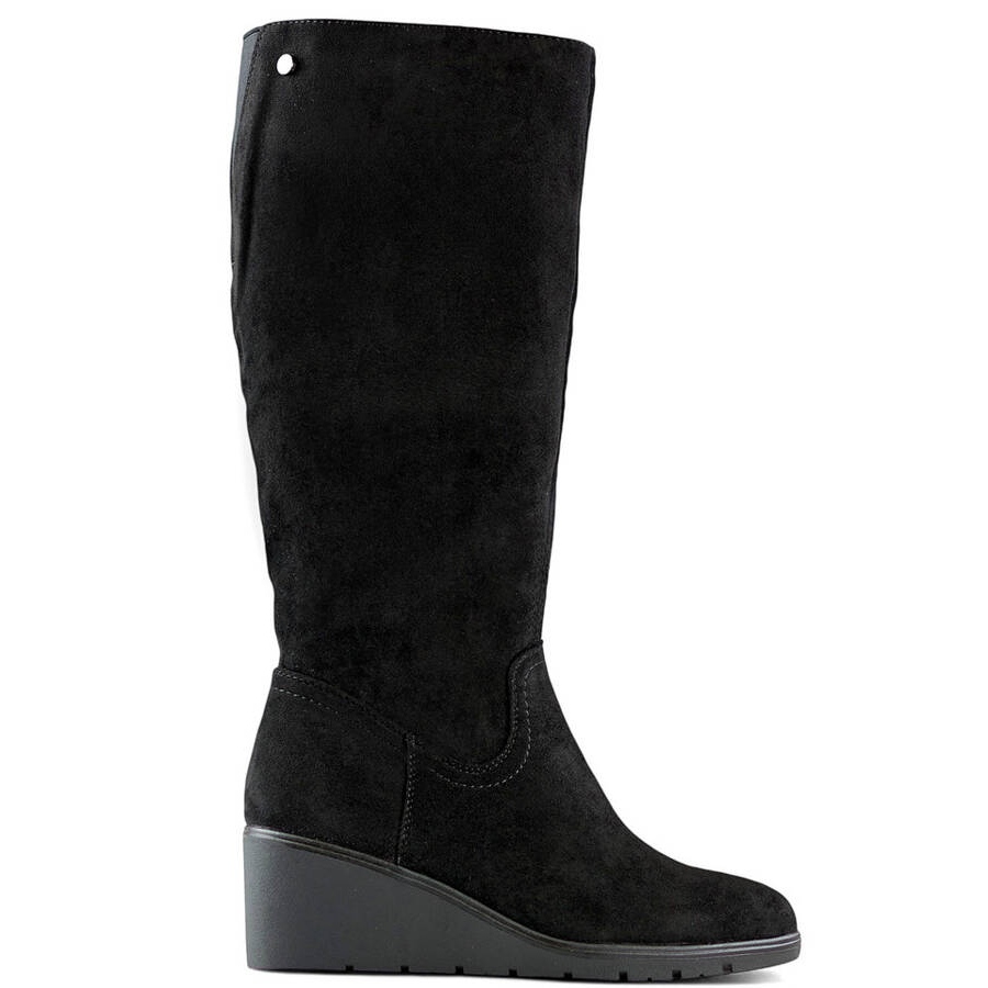 Ces bottes en daim noir sont un incontournable de la garde-robe de chaque femme. Ils sont parfaits pour les styles de tous les jours comme pour les styles plus élégants. Ajoutez-les à votre collection et profitez d'un look tendance et d'un confort au quotidien !