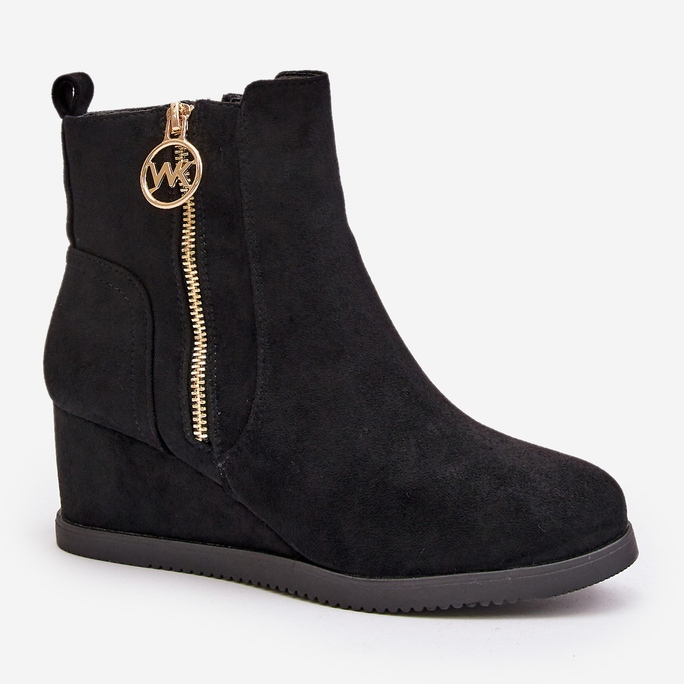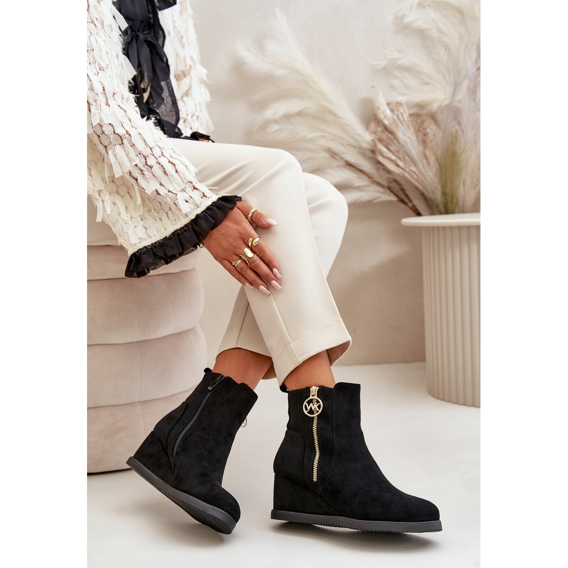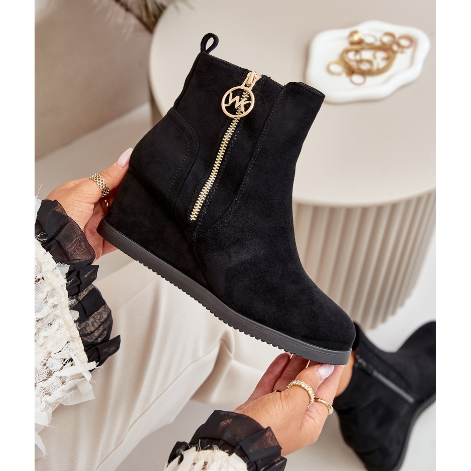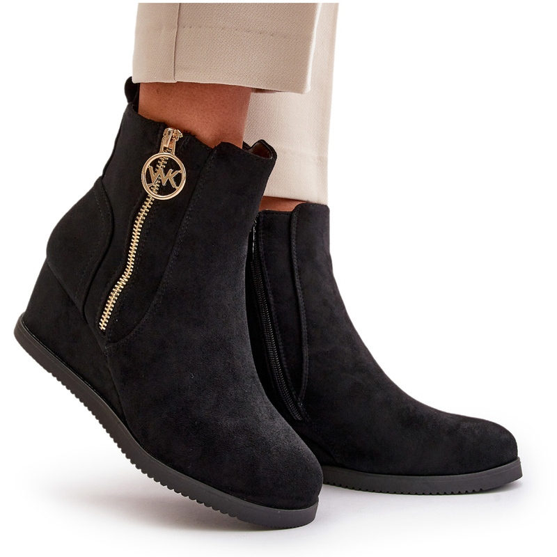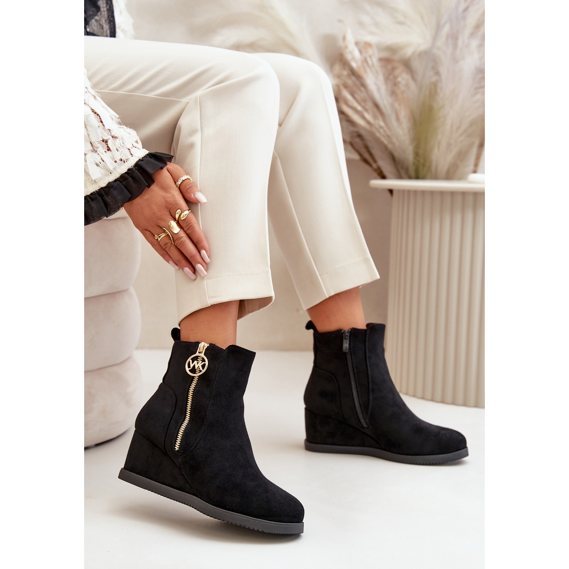 Détails: Bottines compensées isolées avec fermeture éclair décorative, Eco Suède, Noir Leretha le noir