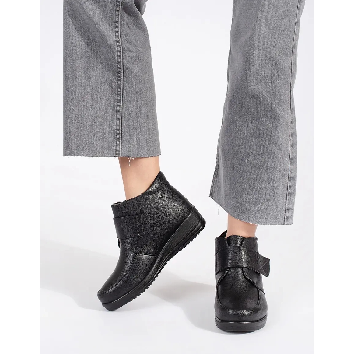 Built-dans le talon et un nez rond complet assurent le confort lors du port, et la fixation fermeture scratch facilite la mise en place et les chaussures. L'excellente hauteur de talon de 4 cm rend les bottes stables et confortables, ce qui les rend appropriés à porter tous les jours.