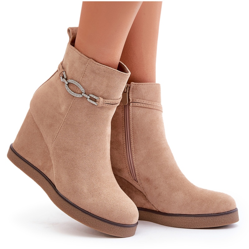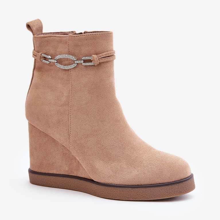 Découvrez l'élégance et le confort à la fois - soyez superbe avec des bottines compensées beiges ! Ces chaussures uniques pour femmes sont fabriquées en éco-daim de haute qualité, ce qui les rend extrêmement élégantes et à la mode. La fermeture à glissière facilite l'enfilage et le retrait, ce que vous apprécierez certainement au quotidien.